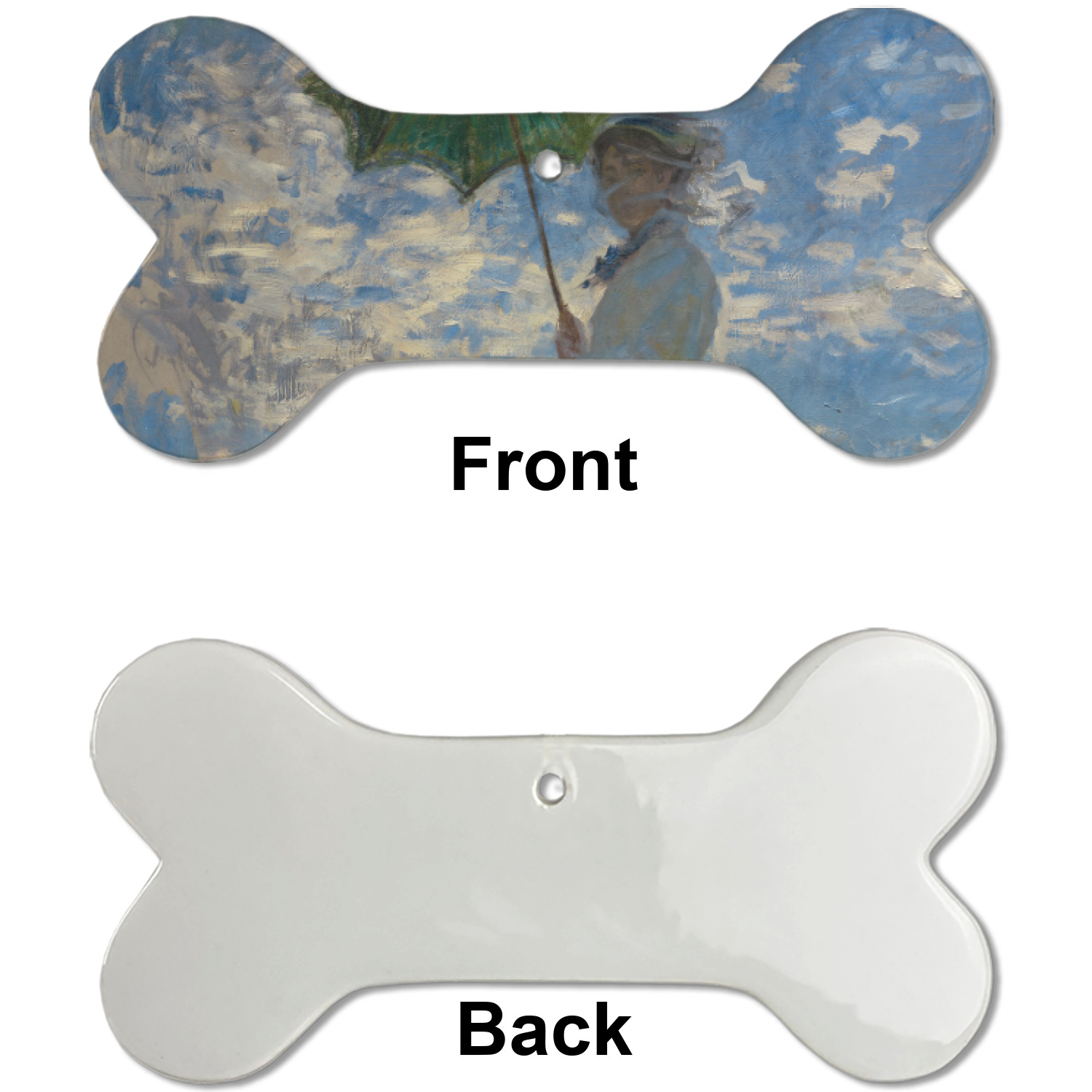 Our dog Christmas ornaments are a ceramic material with a bone-shaped structure hung horizontally. We offer two printing styles to personalize your furry friend's ornament! Choose a one-sided printing, perfect for wall decor, memorial accessory, or doghouse nameplate! Create a double-sided ornament perfect for adorning the Christmas tree. Each dog bone ornament is approximately 4.75" x 2.25" and is printed here in the USA.