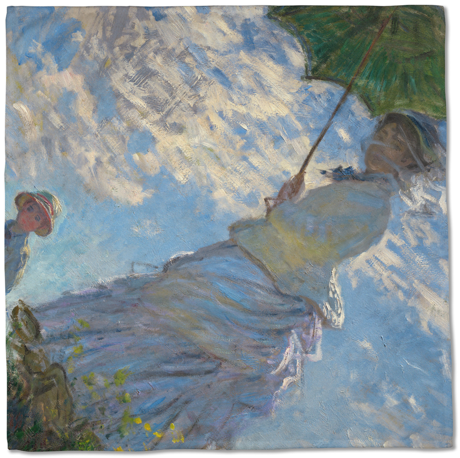 Woman With A Parasol or La Promenade depicts Monet's wife and their son. Although Monet's most obvious strength in his paintings was landscapes, it is quite evident in this painting of his family that he was quite talented at portraying the human figure as well. This painting was intended to be a more candid moment rather than a traditional portrait. In fact, Monet most likely painted this scene in one sitting, maybe even in only a few hours. Monet is quite successful in capturing this typical moment with his family.