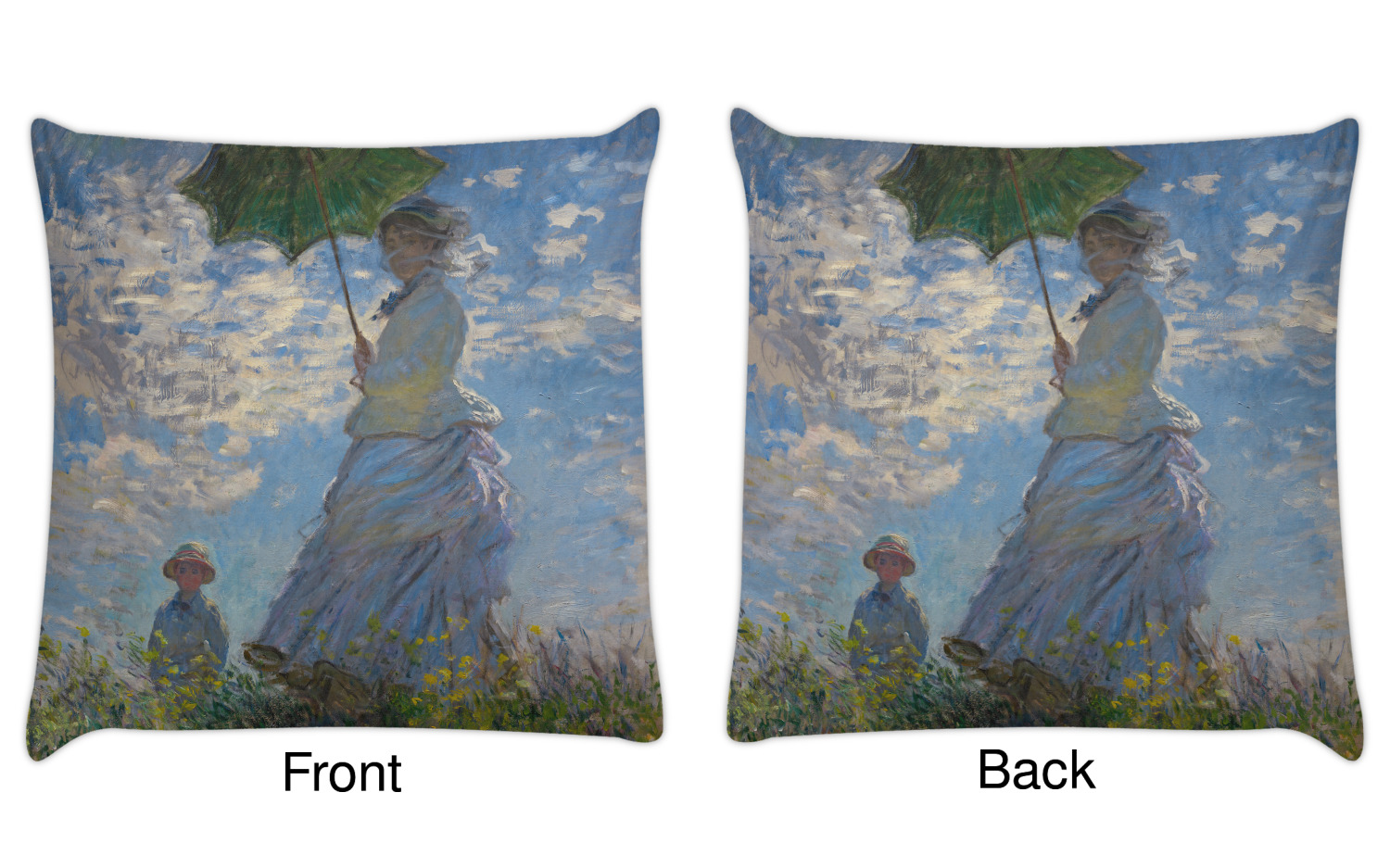 Woman With A Parasol or La Promenade depicts Monet's wife and their son. Although Monet's most obvious strength in his paintings was landscapes, it is quite evident in this painting of his family that he was quite talented at portraying the human figure as well. This painting was intended to be a more candid moment rather than a traditional portrait. In fact, Monet most likely painted this scene in one sitting, maybe even in only a few hours. Monet is quite successful in capturing this typical moment with his family.