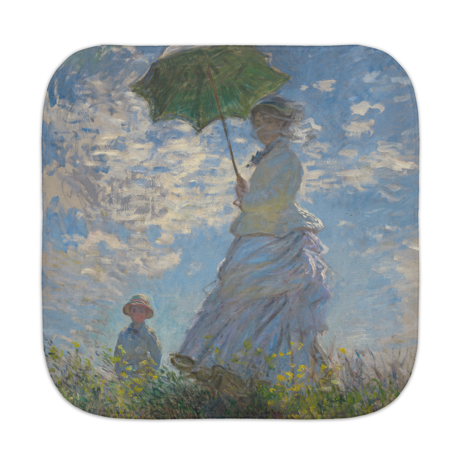 Woman With A Parasol or La Promenade depicts Monet's wife and their son. Although Monet's most obvious strength in his paintings was landscapes, it is quite evident in this painting of his family that he was quite talented at portraying the human figure as well. This painting was intended to be a more candid moment rather than a traditional portrait. In fact, Monet most likely painted this scene in one sitting, maybe even in only a few hours. Monet is quite successful in capturing this typical moment with his family.