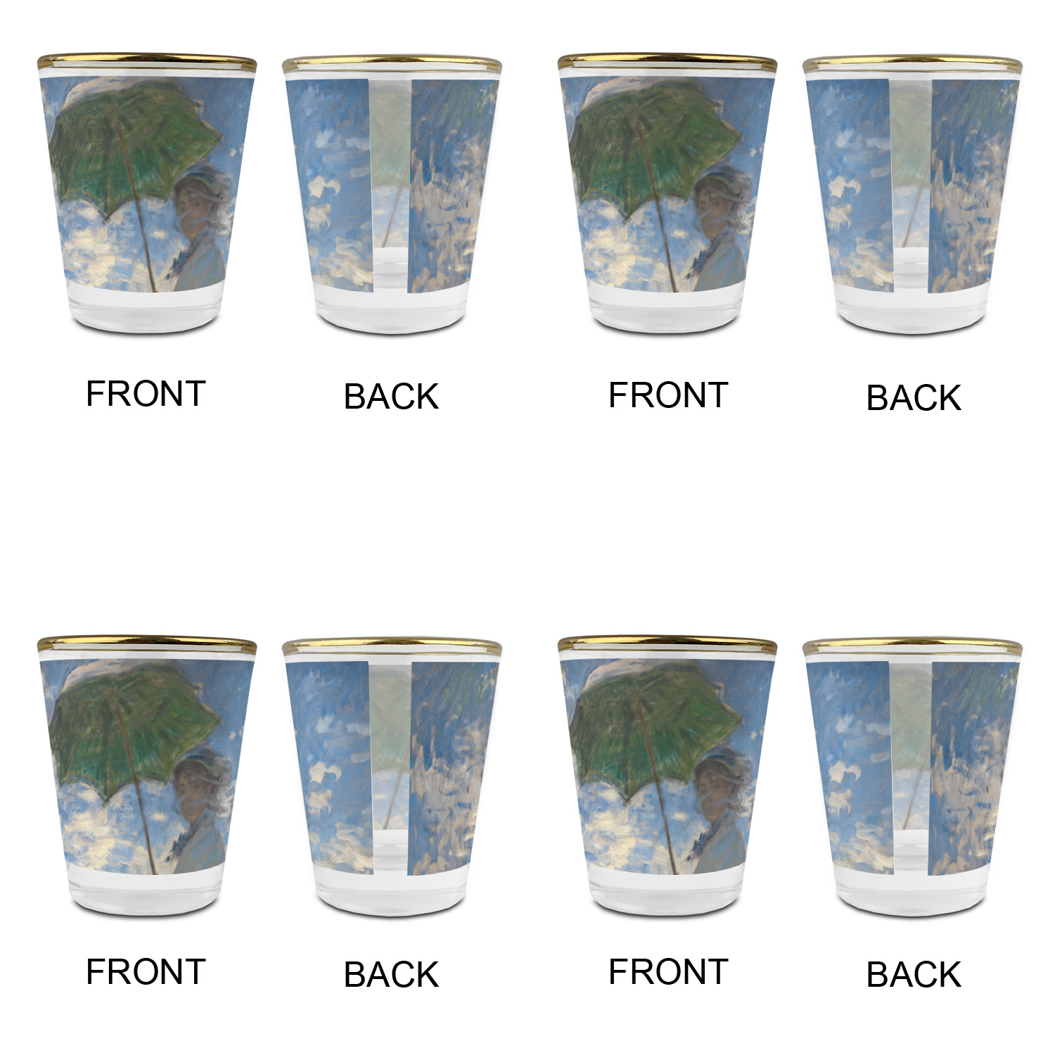 Made with frosted glass, these shot glasses are printed in full color with the design of your choice. They are a standard 1.5oz shot glass and are 2.4" tall. The print is wrapped around the shot glass in a full wrap and boldly displays your customization.