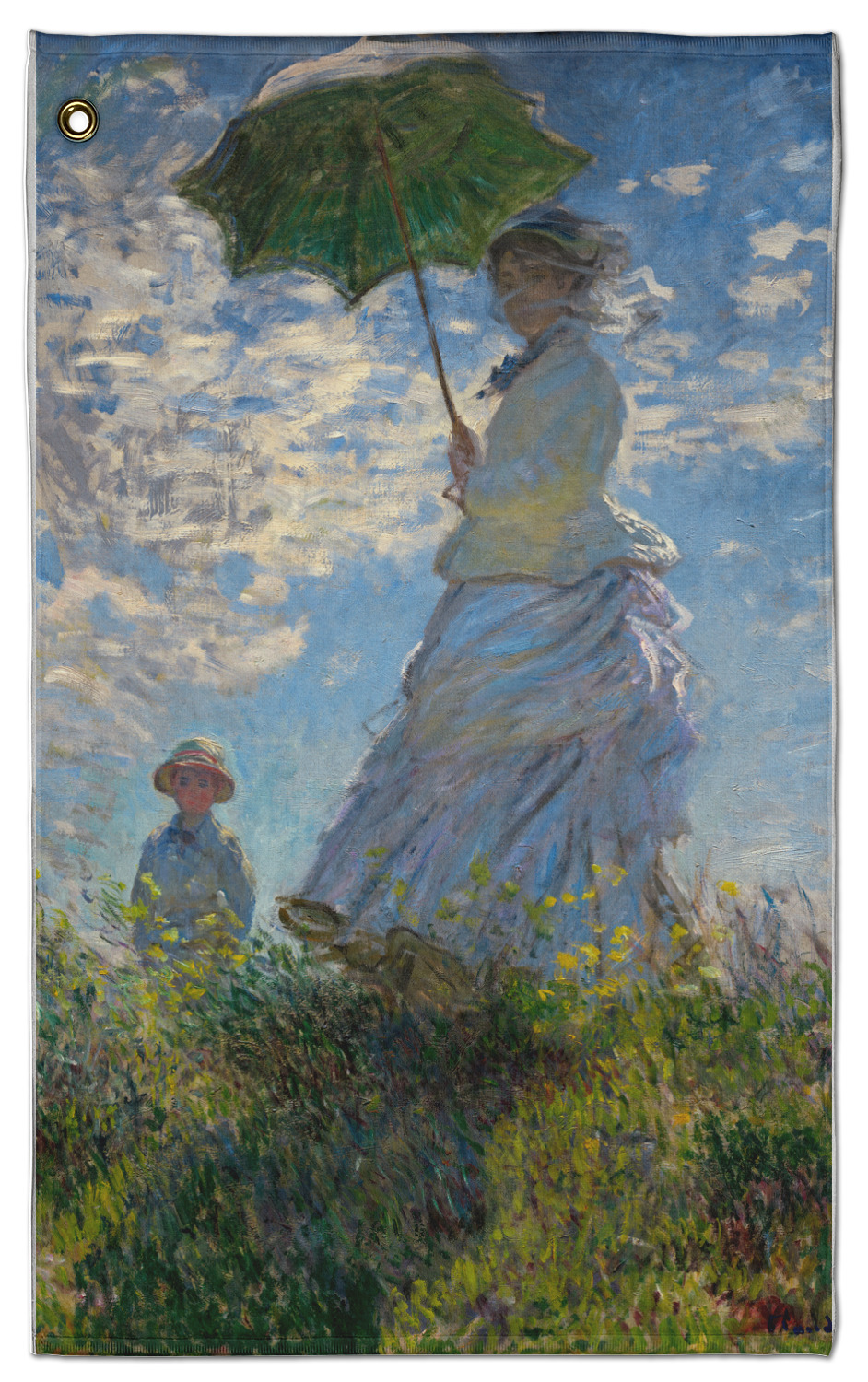 Woman With A Parasol or La Promenade depicts Monet's wife and their son. Although Monet's most obvious strength in his paintings was landscapes, it is quite evident in this painting of his family that he was quite talented at portraying the human figure as well. This painting was intended to be a more candid moment rather than a traditional portrait. In fact, Monet most likely painted this scene in one sitting, maybe even in only a few hours. Monet is quite successful in capturing this typical moment with his family.
