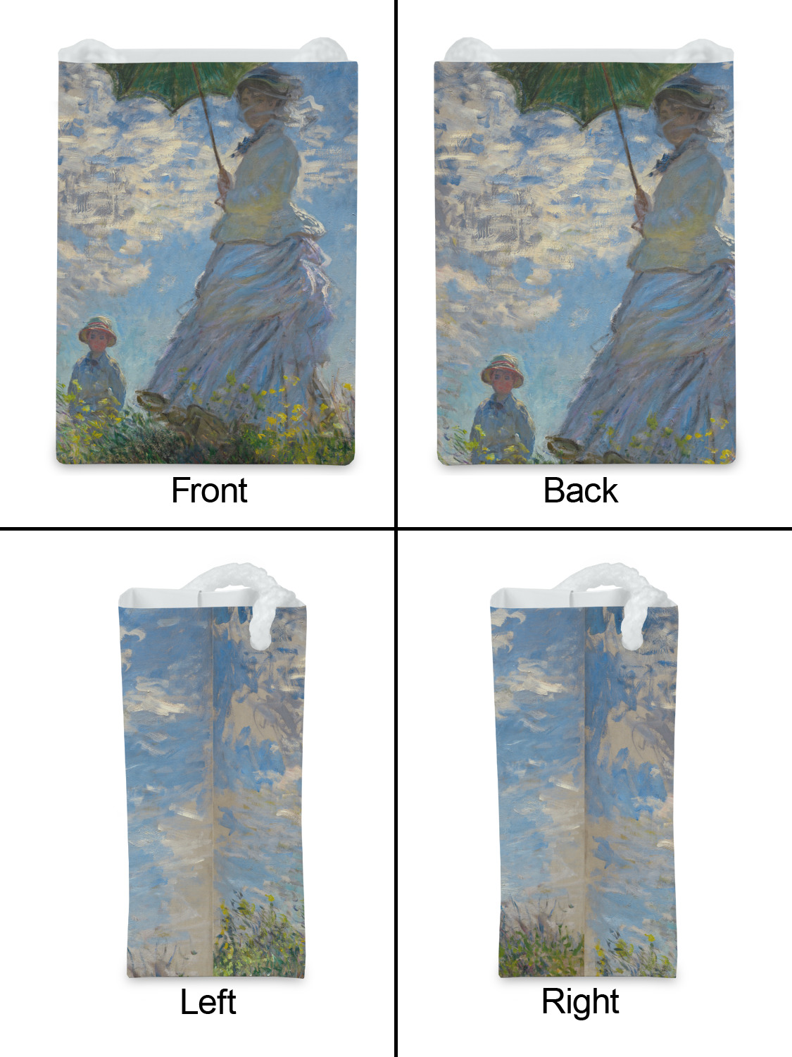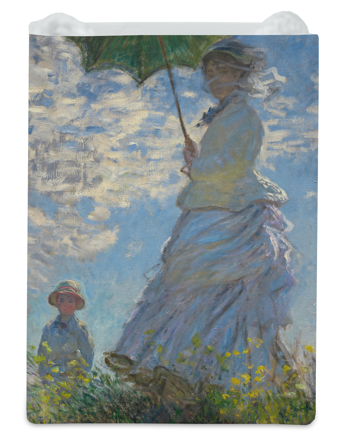 Woman With A Parasol or La Promenade depicts Monet's wife and their son. Although Monet's most obvious strength in his paintings was landscapes, it is quite evident in this painting of his family that he was quite talented at portraying the human figure as well. This painting was intended to be a more candid moment rather than a traditional portrait. In fact, Monet most likely painted this scene in one sitting, maybe even in only a few hours. Monet is quite successful in capturing this typical moment with his family.