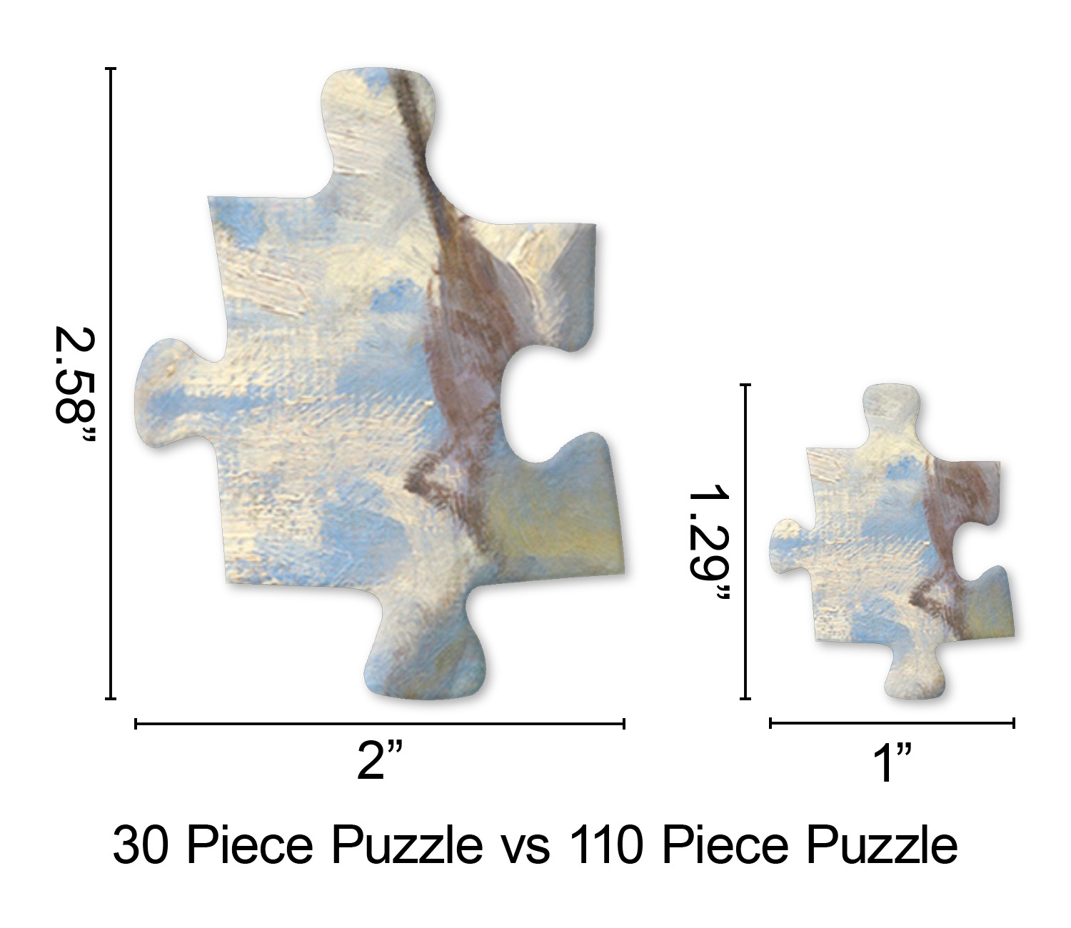 We print our puzzles on thick white chipboard in vibrant colors, then laminate the chipboard and die cut your puzzle. Your jigsaw puzzle is shipped to you in a box with the image of the puzzle on the box.