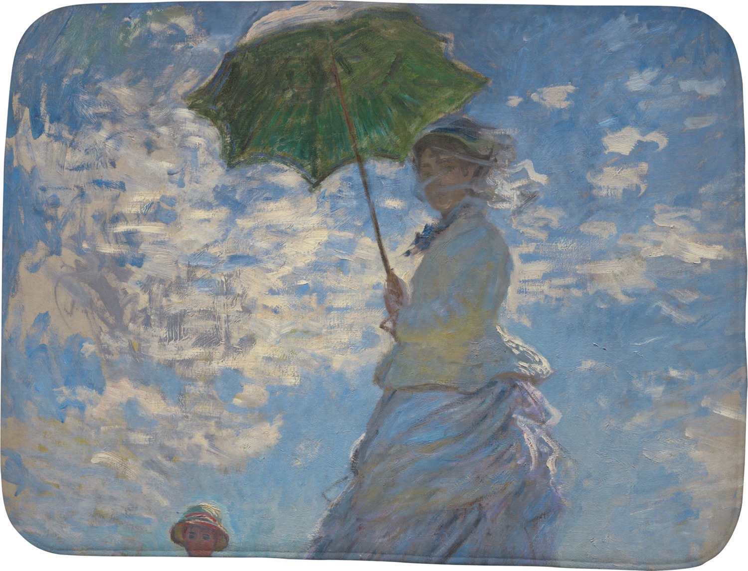 Woman With A Parasol or La Promenade depicts Monet's wife and their son. Although Monet's most obvious strength in his paintings was landscapes, it is quite evident in this painting of his family that he was quite talented at portraying the human figure as well. This painting was intended to be a more candid moment rather than a traditional portrait. In fact, Monet most likely painted this scene in one sitting, maybe even in only a few hours. Monet is quite successful in capturing this typical moment with his family.