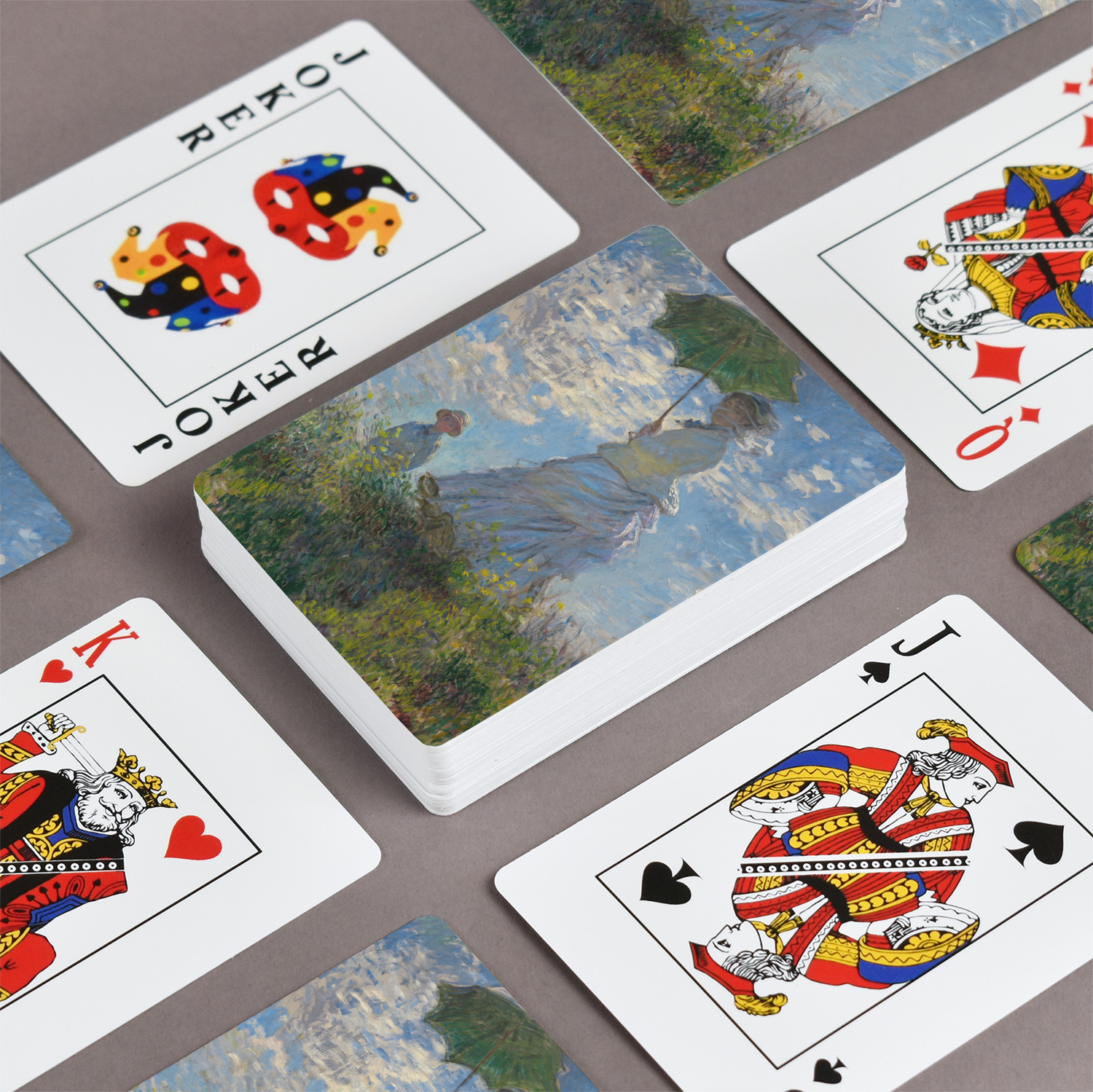 Our playing cards include a standard deck of 52 cards with 2 jokers. Our playing cards are standard card size - 2.5" wide X 3.5" high. Our cards are printed in full color on smooth playing card stock which gives them a nice snap, good wearability, and easy to shuffle.