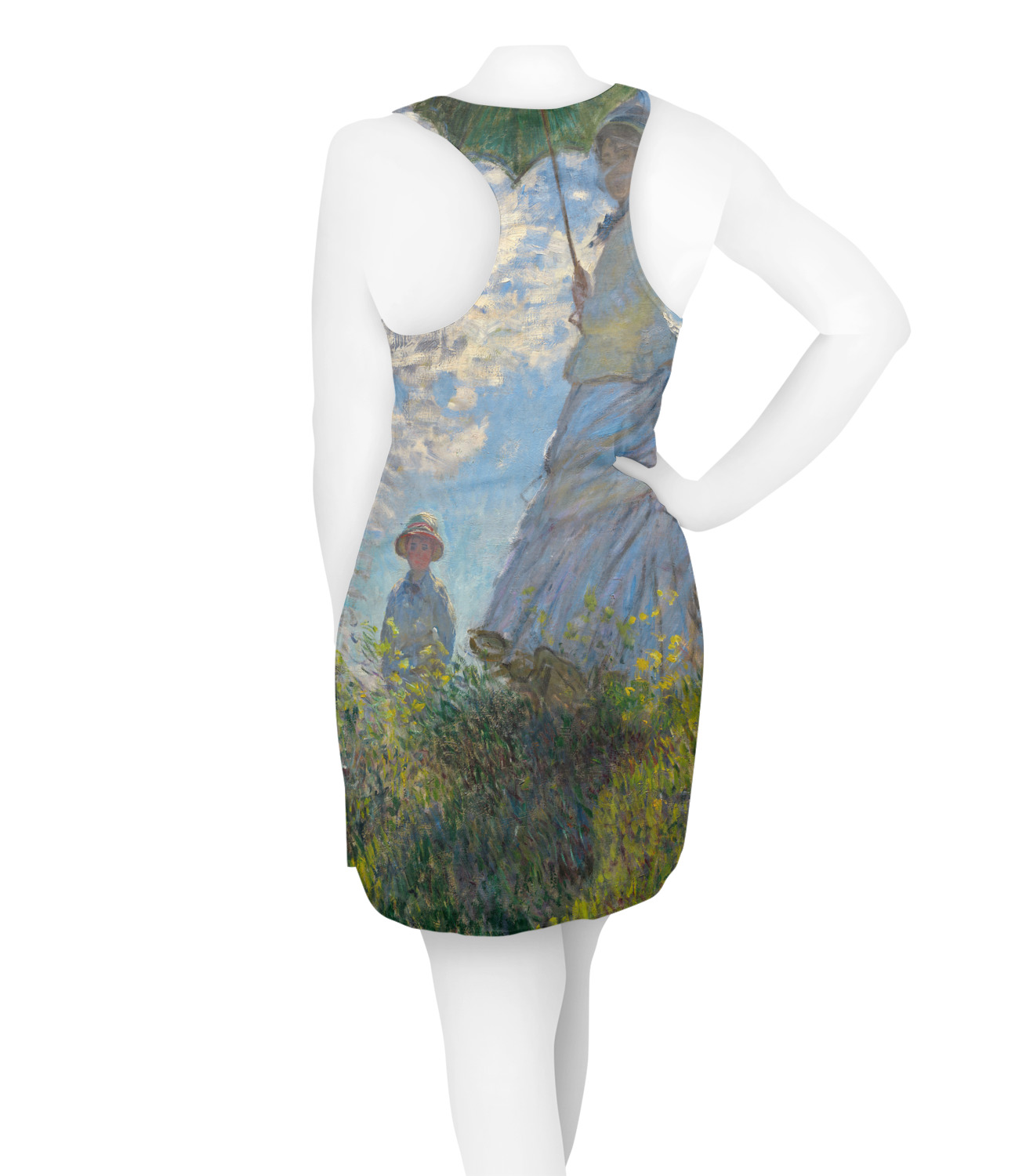 Woman With A Parasol or La Promenade depicts Monet's wife and their son. Although Monet's most obvious strength in his paintings was landscapes, it is quite evident in this painting of his family that he was quite talented at portraying the human figure as well. This painting was intended to be a more candid moment rather than a traditional portrait. In fact, Monet most likely painted this scene in one sitting, maybe even in only a few hours. Monet is quite successful in capturing this typical moment with his family.