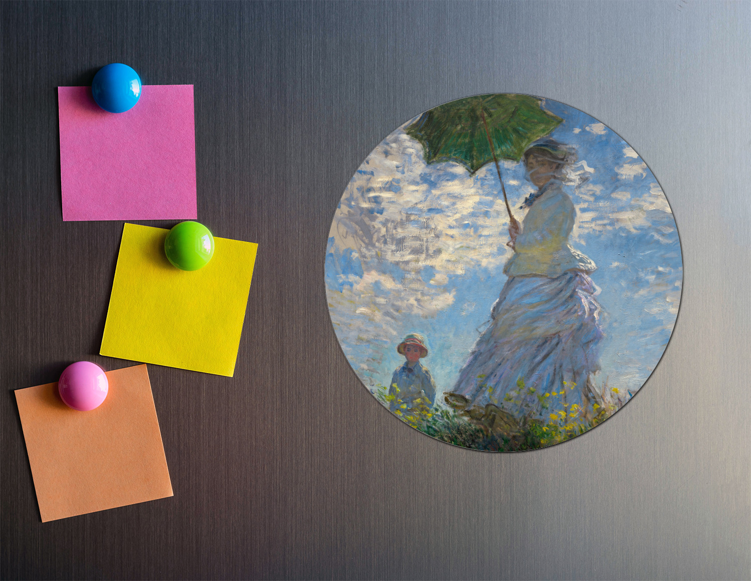 Woman With A Parasol or La Promenade depicts Monet's wife and their son. Although Monet's most obvious strength in his paintings was landscapes, it is quite evident in this painting of his family that he was quite talented at portraying the human figure as well. This painting was intended to be a more candid moment rather than a traditional portrait. In fact, Monet most likely painted this scene in one sitting, maybe even in only a few hours. Monet is quite successful in capturing this typical moment with his family.