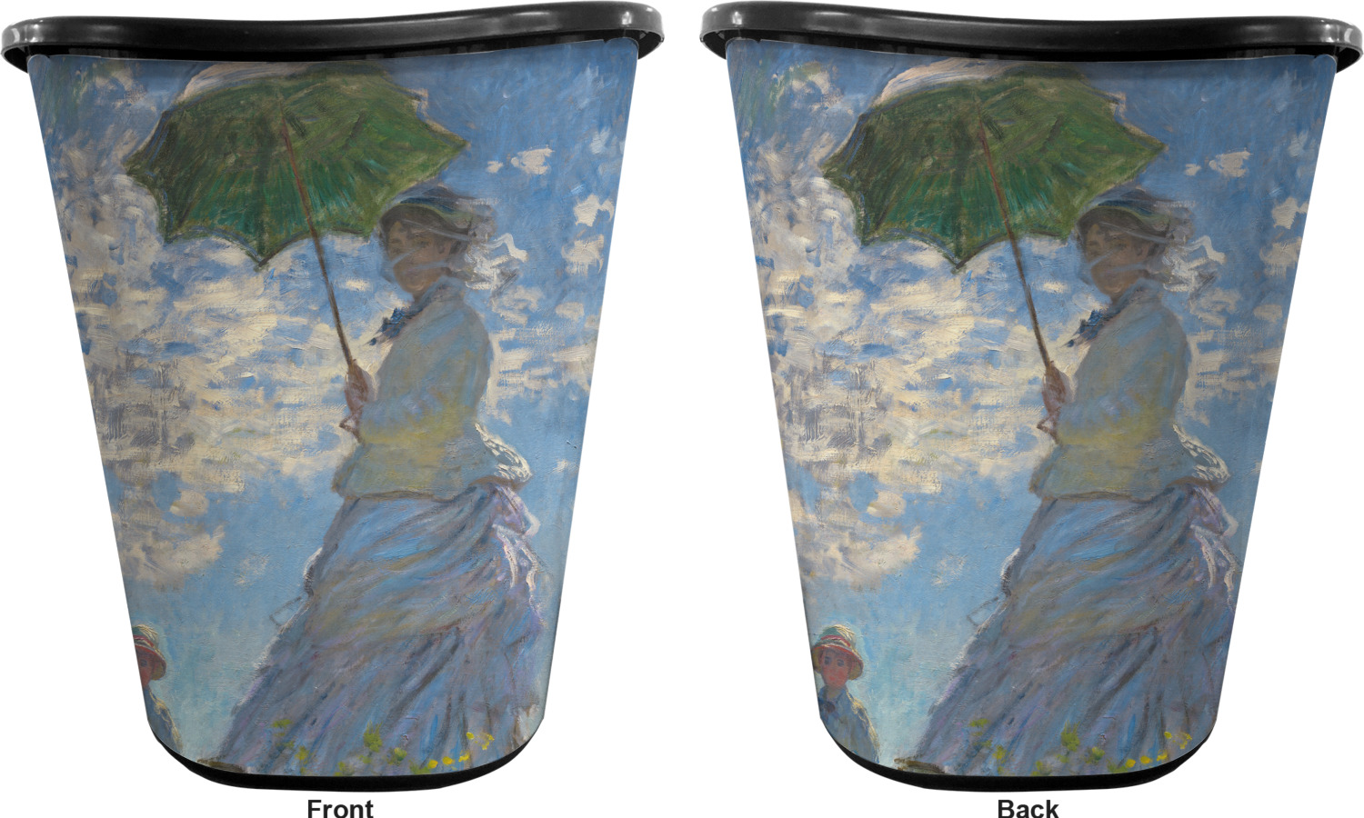 You can choose to purchase these decorative wastebaskets in either a white or a black color that will show on the base and the upper rim. Your customization is printed on a high-gloss, fine-quality vinyl adhesive, and you can choose to either have this adhesive applied to one side only or to both sides. As such, this plastic wastebasket can be single-sided or double-sided, depending on your creative vision. Your customization is printed using durable inks, making the design waterproof and resistant to fading over time.
