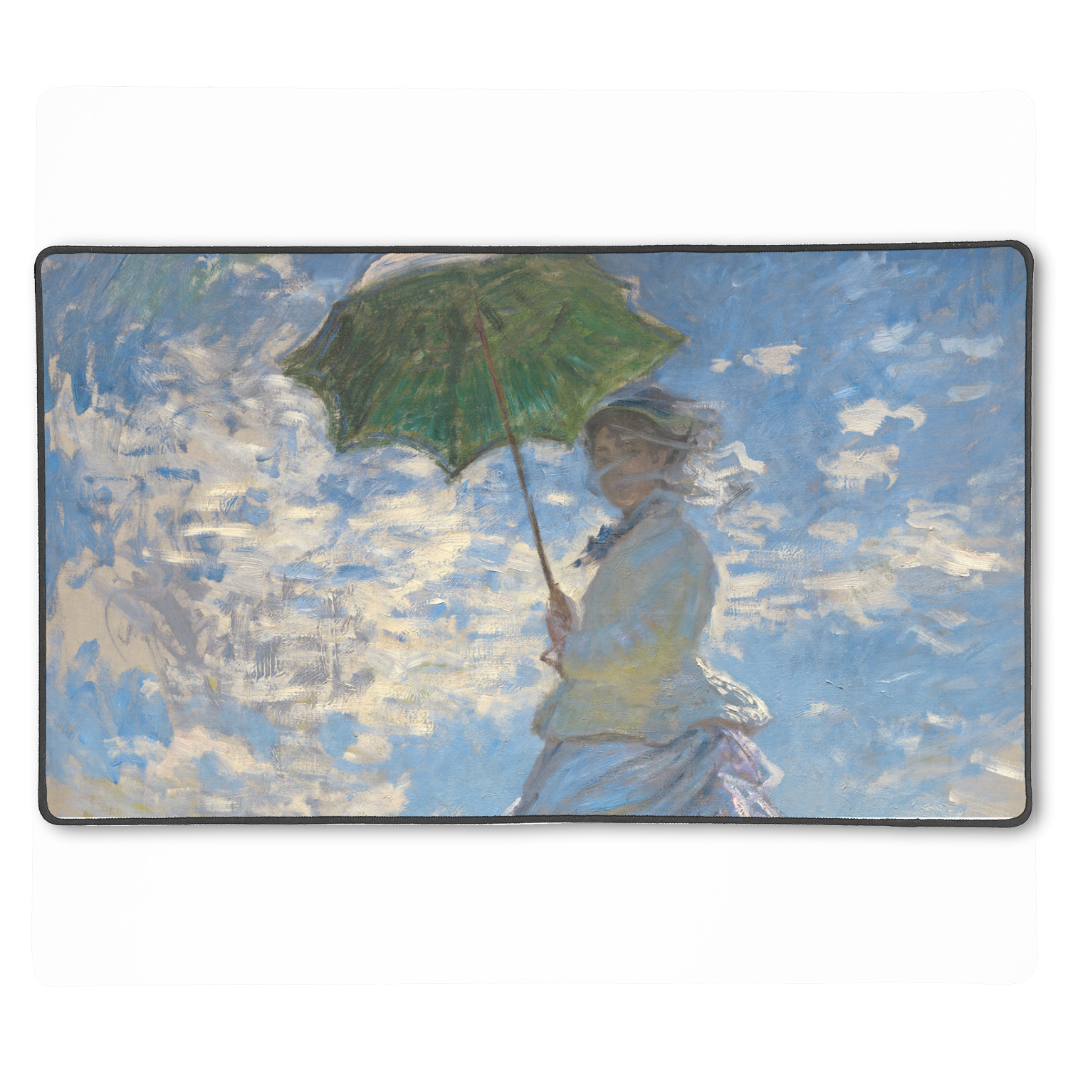 Woman With A Parasol or La Promenade depicts Monet's wife and their son. Although Monet's most obvious strength in his paintings was landscapes, it is quite evident in this painting of his family that he was quite talented at portraying the human figure as well. This painting was intended to be a more candid moment rather than a traditional portrait. In fact, Monet most likely painted this scene in one sitting, maybe even in only a few hours. Monet is quite successful in capturing this typical moment with his family.