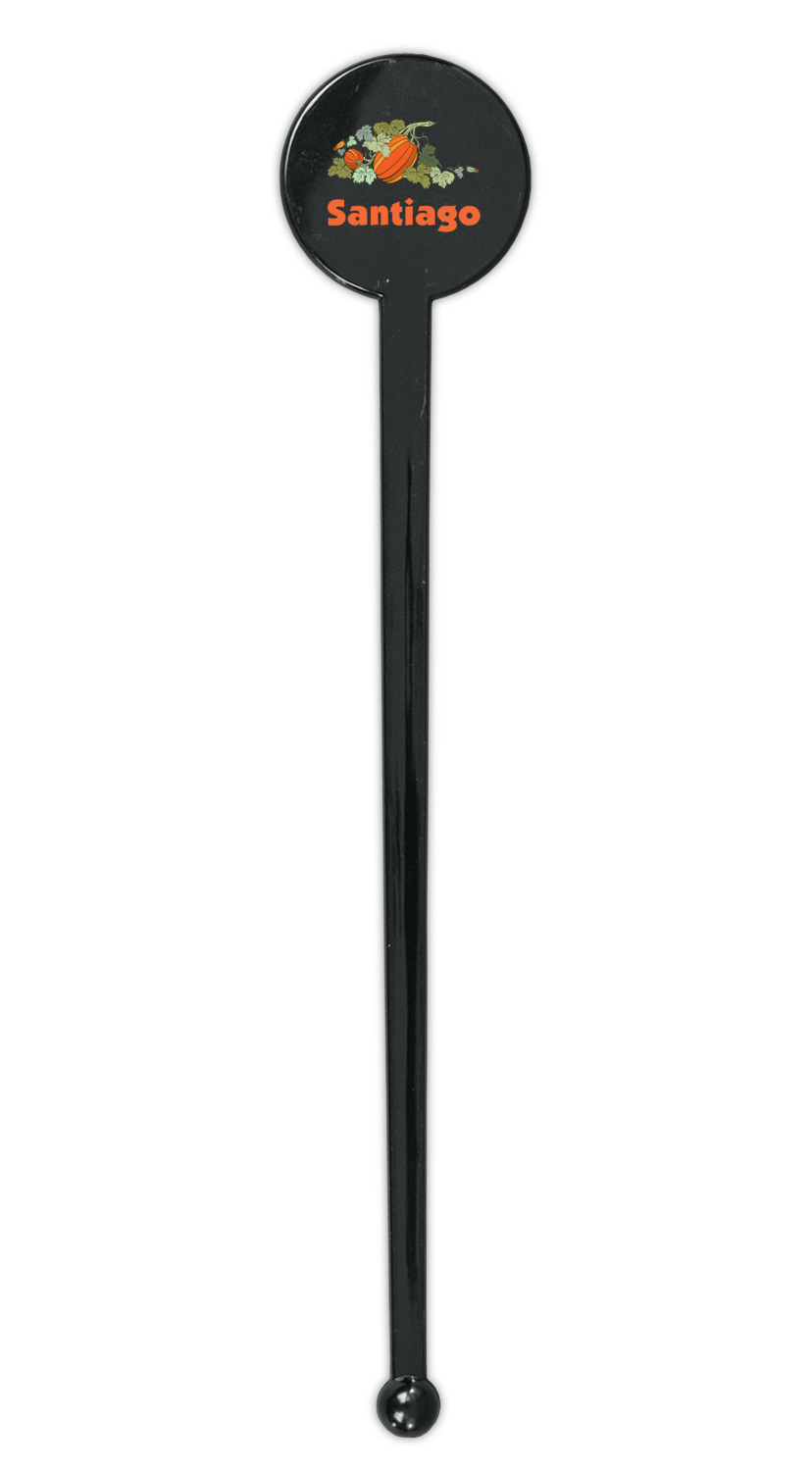 Pumpkins Designs for 7" Round Plastic Stir Sticks - Black - Single-Sided