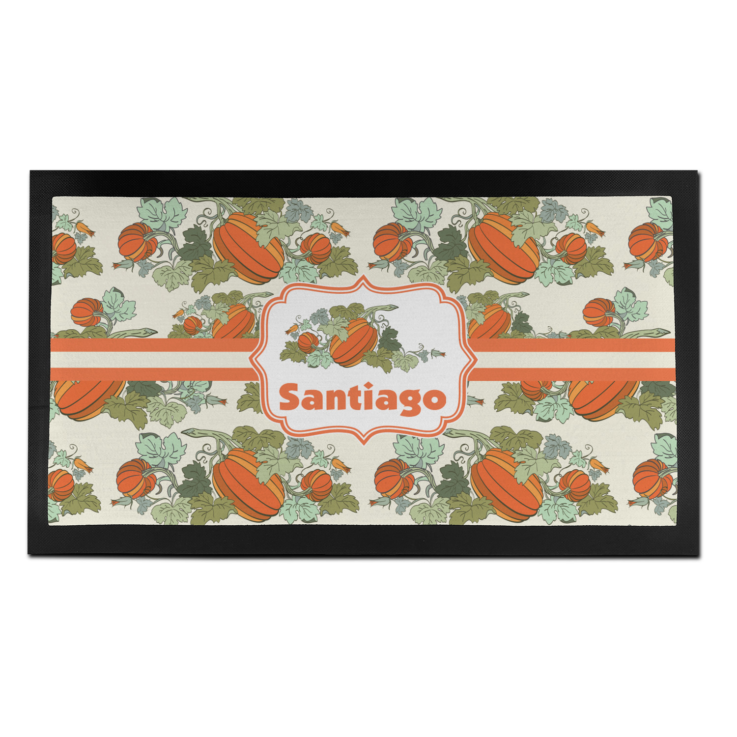 We chose a ribbon with the thick stripe, along with a decorative frame. We used the pumpkin with the vine & leaves for our graphic along with a name for personalization.