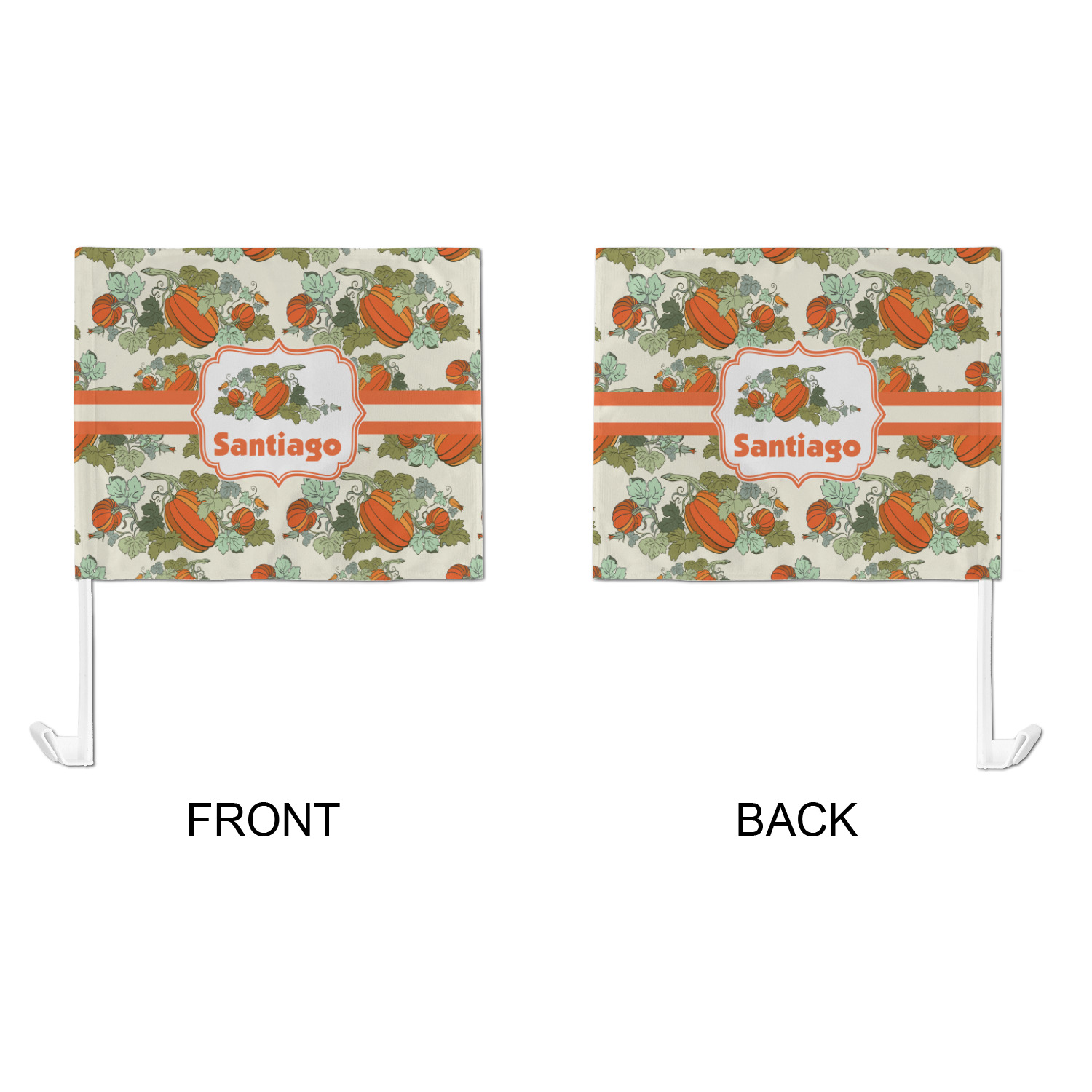 Our personalized flags are made from a durable, yet lightweight cloth that will proudly bear your logo or design of choice, while withstanding the outside elements. We have two size options - 8" x 11" and 11" x 15". Both come with a flag pole which includes a clip that secures the pole to the side window, whether it is rolled up or down. The flags are printed on both sides to display your design from all directions.