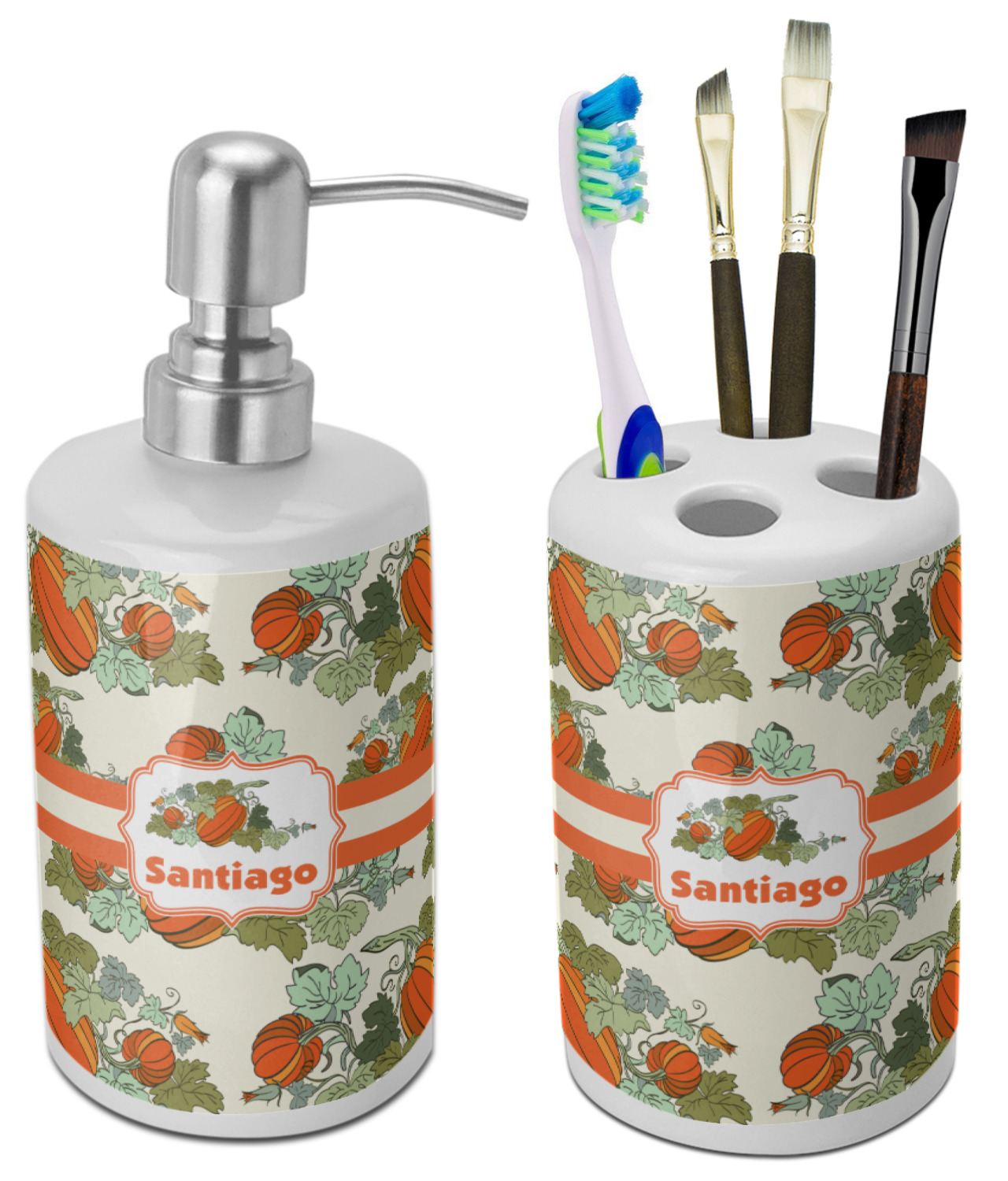| Product Dimensions | Ceramic Soap / Lotion Dispenser (4" x 3" x 7") Ceramic Toothbrush Holder (3" x 3" x 4.5") |