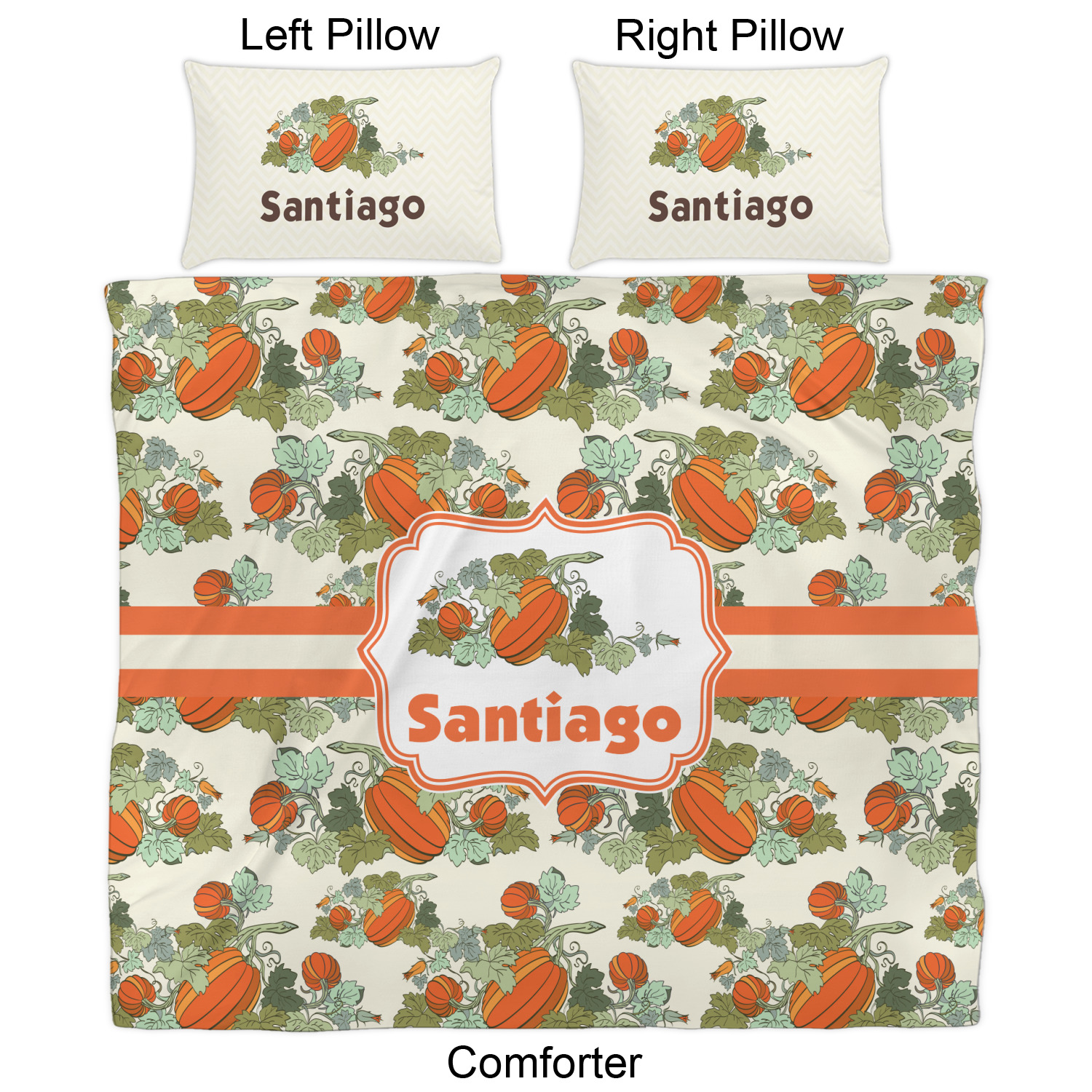 We have hundreds of different design templates for you to choose from Each design can be customized to your exact specifications. Not only can you customize the comforter, but you can also customize each pillow sham e.g. for a queen comforter set you have have Mr & Mrs pillow shams with the last name on comforter.