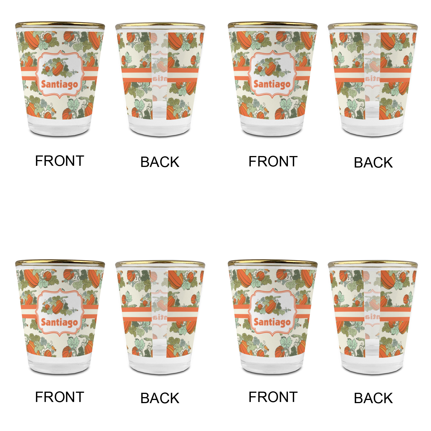 Pumpkins Designs for Glass Shot Glasses - 1.5 oz - with Gold Rim - Set of 4