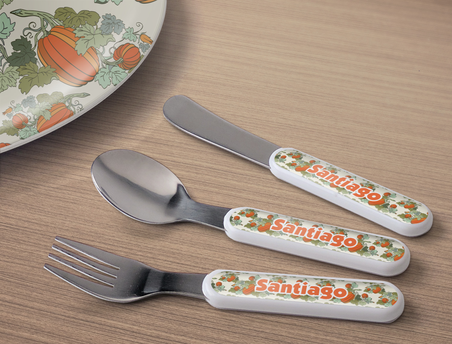 This set of kids' silverware includes a 5.5 inch spoon, fork, and knife, catered to your little one's needs. The prongs of this fork are flat and dull, while our spoon is small enough for tiny mouths, and the dullness of the knife itself resembles a butter knife, at most. These kids' utensils are made of stainless steel, while the handles are crafted from a durable plastic that will withstand the energy and use of your young one. We print your customization across the handles, making the cutlery set unique to your child only.