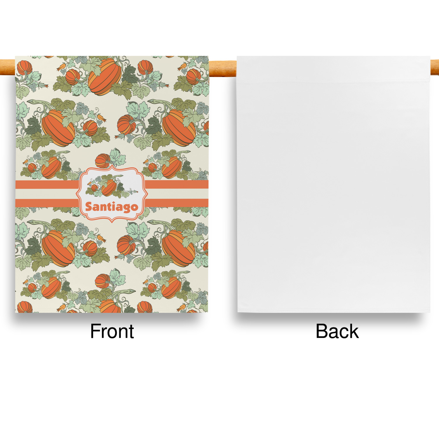 These custom garden flags are made of a durable, double-ply, polyester weave, allowing them to withstand the elements year round. The small flags measure at approximately 12 by 18 inches. The large flags measure out to 28 by 37 inches. You can order these decorative flags with your customization printed on the front only, or the front and back.