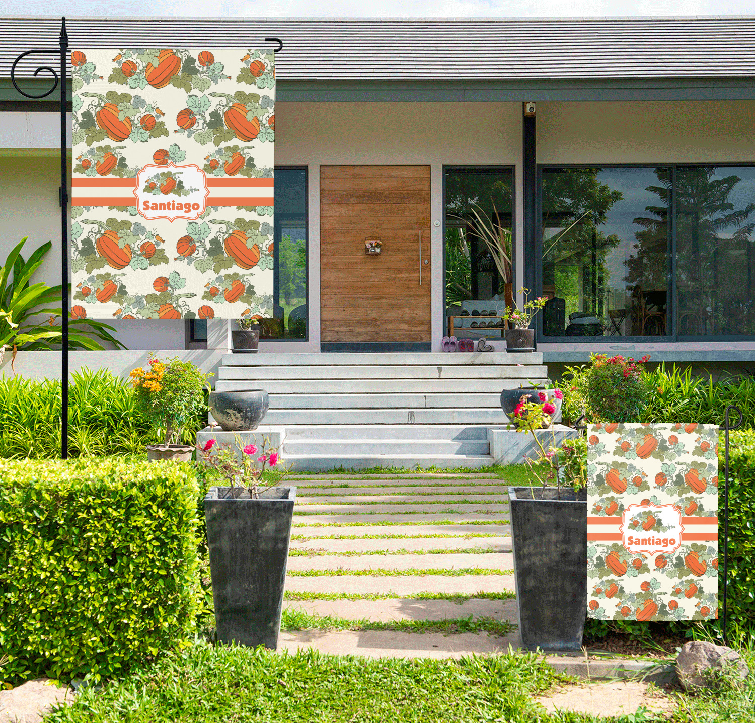 Decorate your front yard or your garden with one of our personalized garden flags! These garden flags will add a splash of color and personalization to any home's greenspace. Customize one with your name, favorite colors, and patterns, as a great addition to your home's exterior! Or, customize multiple seasonal flags and change them throughout the year!