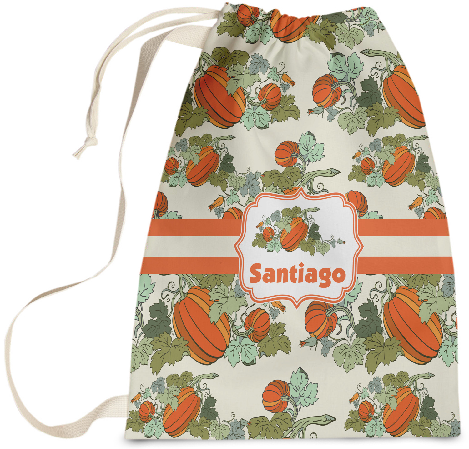 Carry your laundry in style with these customized laundry bags. Available in two sizes, featuring a natural colored woven strap and a cinch cord, these bags hold a lot of clothes or anything else you want to fit in them.