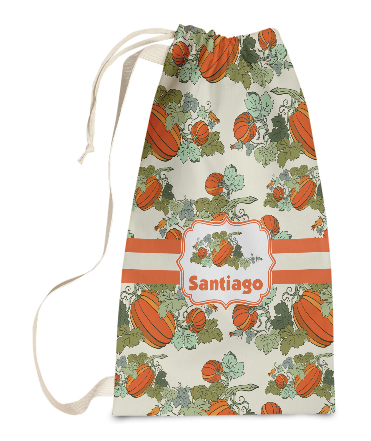 Carry your laundry in style with these customized laundry bags. Available in two sizes, featuring a natural colored woven strap and a cinch cord, these bags hold a lot of clothes or anything else you want to fit in them.