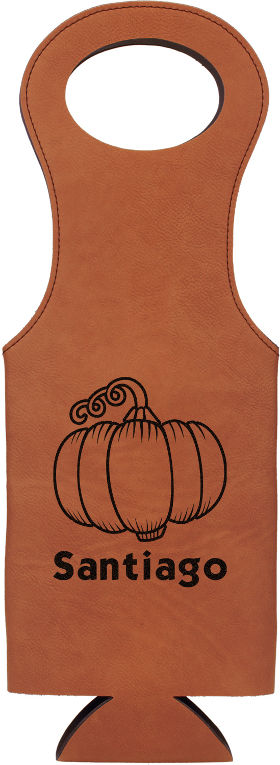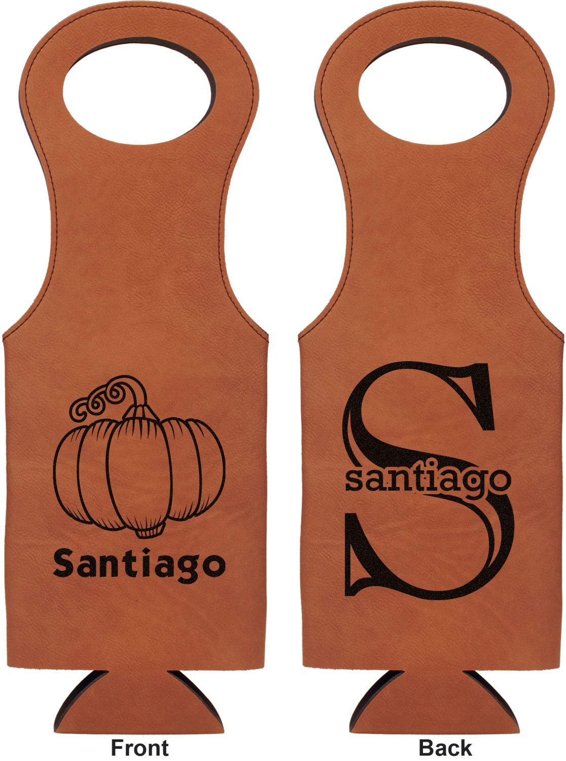 This wine carrier is made from a stunning leatherette, in a cognac-brown color. Strong, black stitching lines the sides of your wine bottle bag and provides extra durability. The interior is lined with a padded, black material to allow for a snug fit once your bottle is placed inside. At the top of this wine gift bag, you'll find two oval shaped handles that elegantly complements the rest of the bag's style. We provide you with the option of laser-engraving the front, or the front and back of your new personalized wine bag!