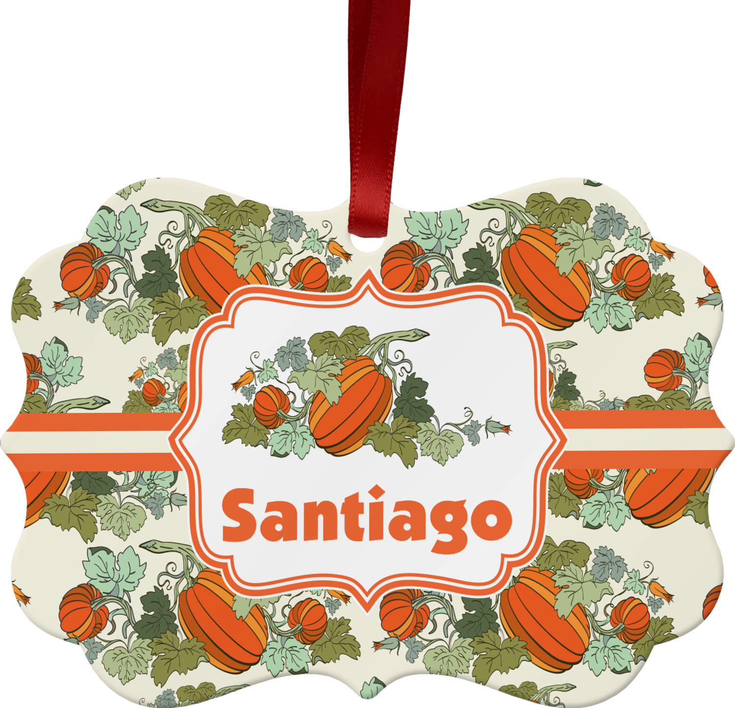 We chose a ribbon with the thick stripe, along with a decorative frame. We used the pumpkin with the vine & leaves for our graphic along with a name for personalization.