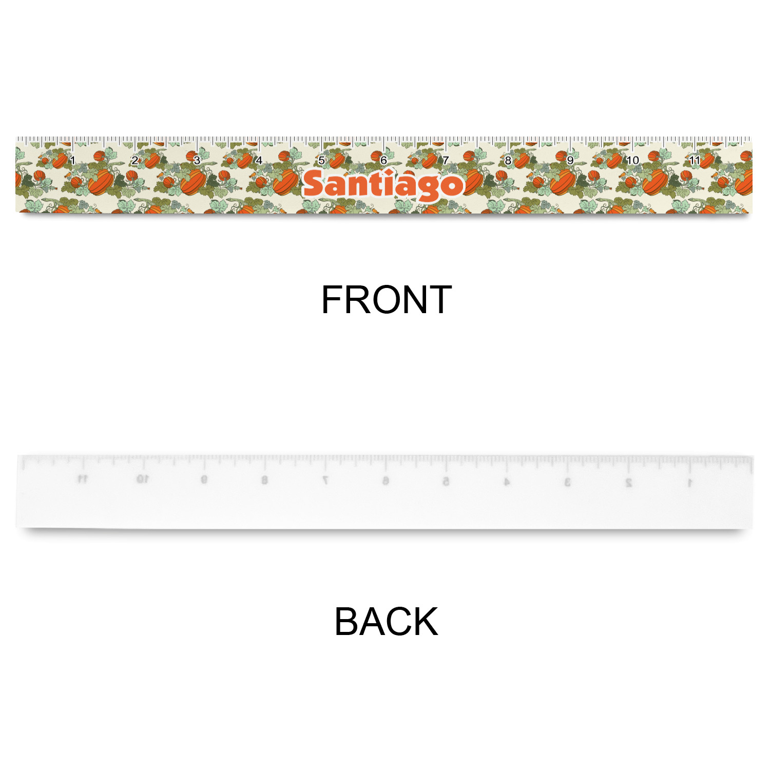 We chose a ribbon with the thick stripe, along with a decorative frame. We used the pumpkin with the vine & leaves for our graphic along with a name for personalization.