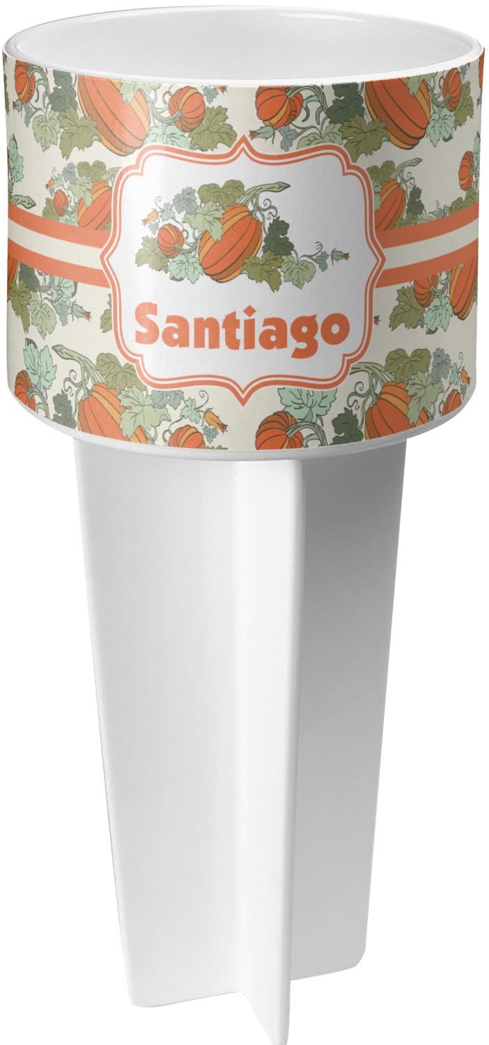 This cup holder has a large stake at its bottom that anchors it to the sand or ground below, while the cup holder rests above the stake. The entire drink holder is made of durable plastic and displays your customization around the cup holder portion. We sell these personalized beach spikers in two different colors: black and white.