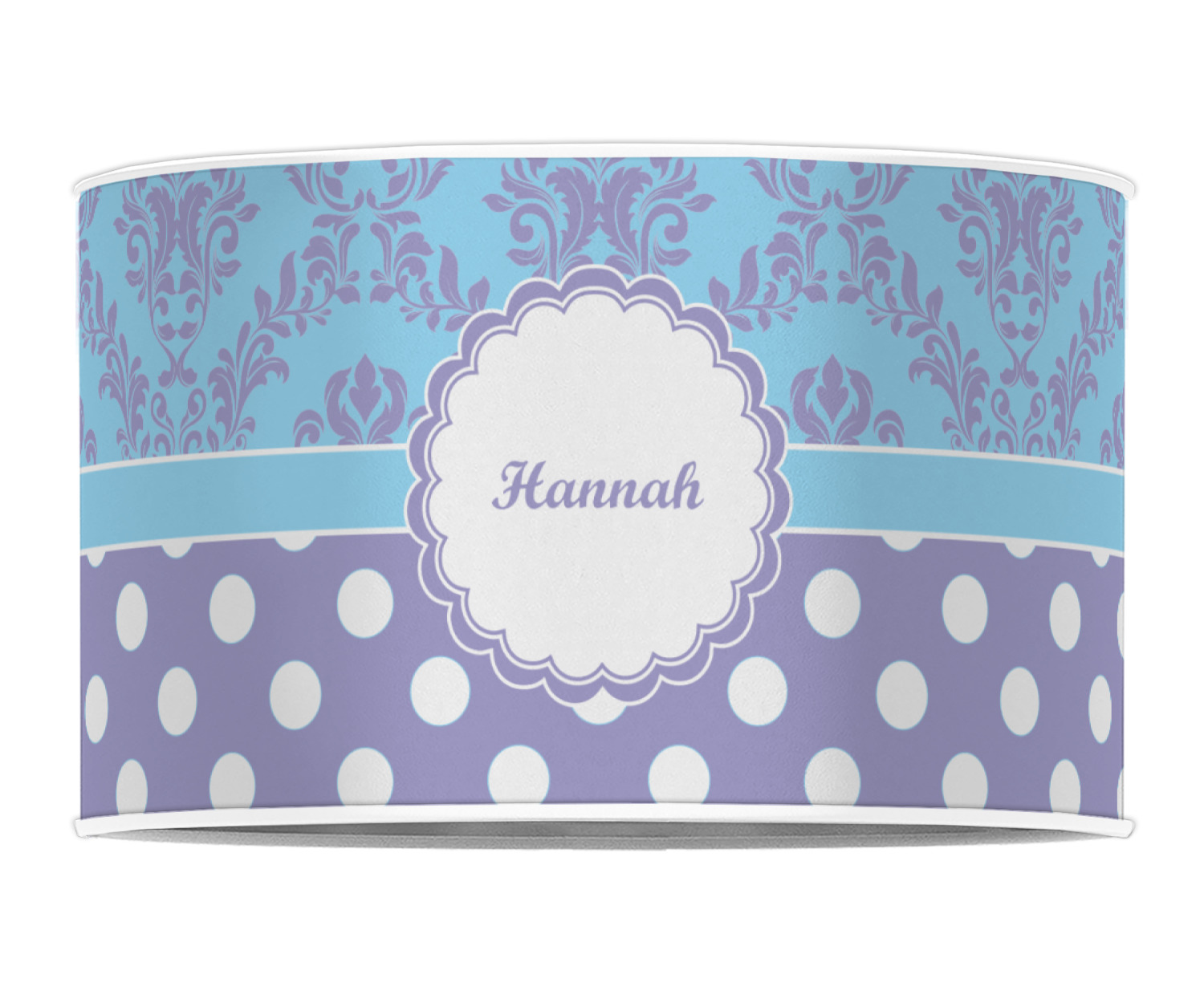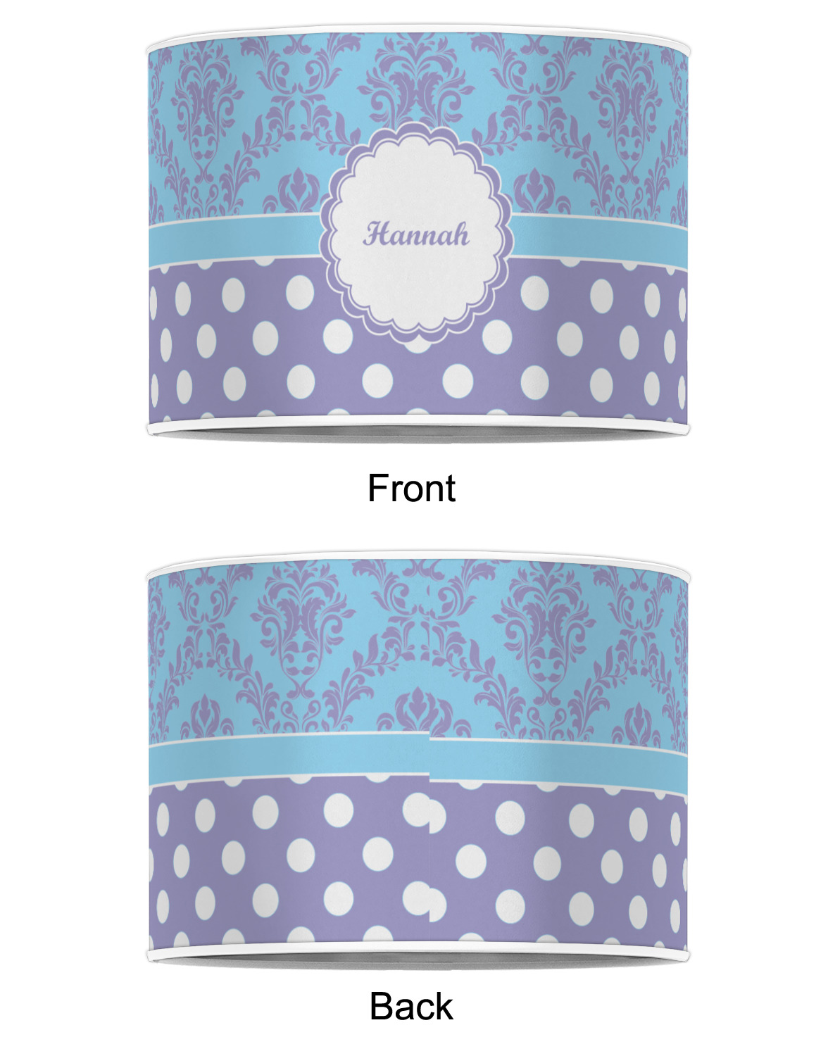 Here is a wonderful damask design with a fun, modern twist. The top of this design features a blue and purple elegant damask. The bottom features a classic design of purple with white polka dots. The two make an adorable combination. The design is completely re-color-able - so you can change any of of the colors and choose from the many many colors in our customization system.