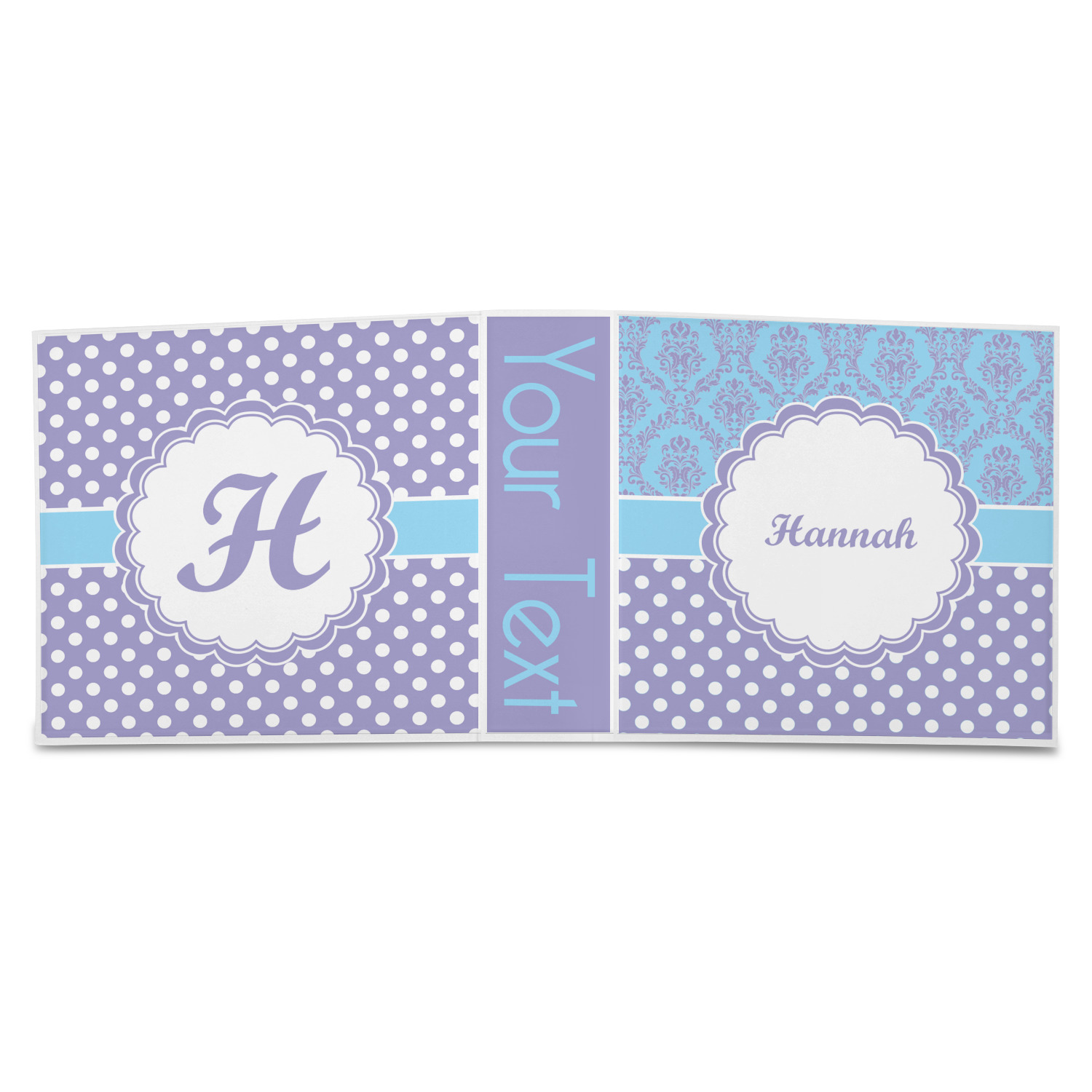 Here is a wonderful damask design with a fun, modern twist. The top of this design features a blue and purple elegant damask. The bottom features a classic design of purple with white polka dots. The two make an adorable combination. The design is completely re-color-able - so you can change any of of the colors and choose from the many many colors in our customization system.