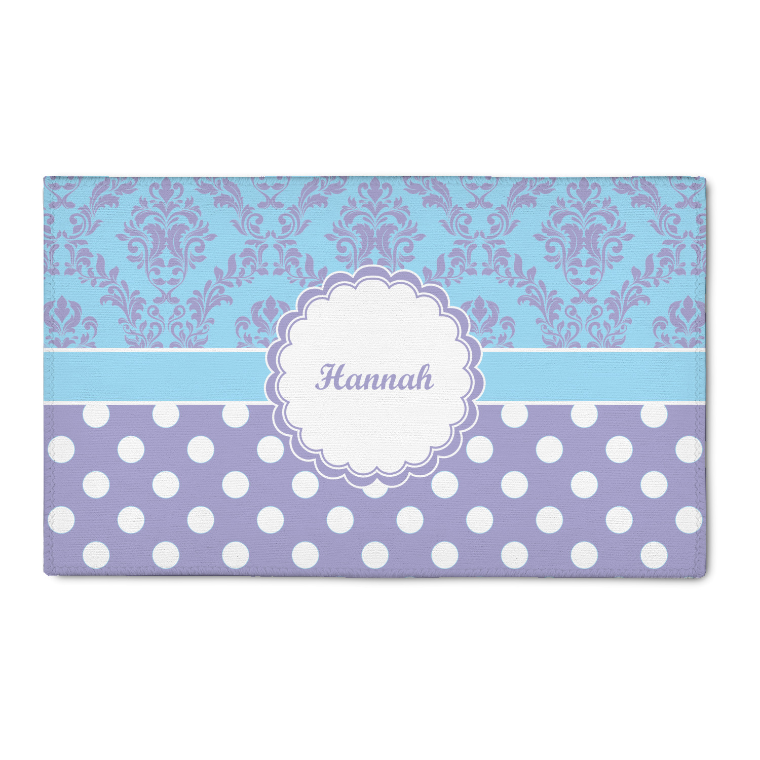 Here is a wonderful damask design with a fun, modern twist. The top of this design features a blue and purple elegant damask. The bottom features a classic design of purple with white polka dots. The two make an adorable combination. The design is completely re-color-able - so you can change any of of the colors and choose from the many many colors in our customization system.