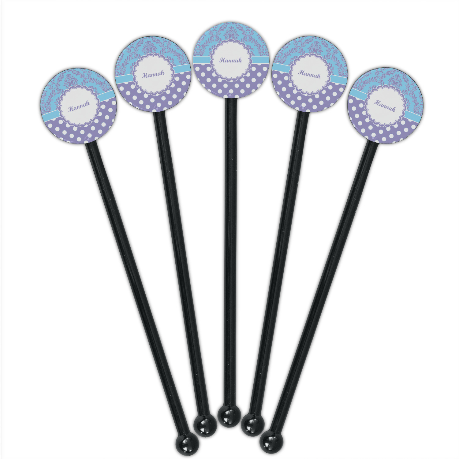 Shape + Symbol Designs for 5.5" Round Plastic Stir Sticks - Black - Single-Sided