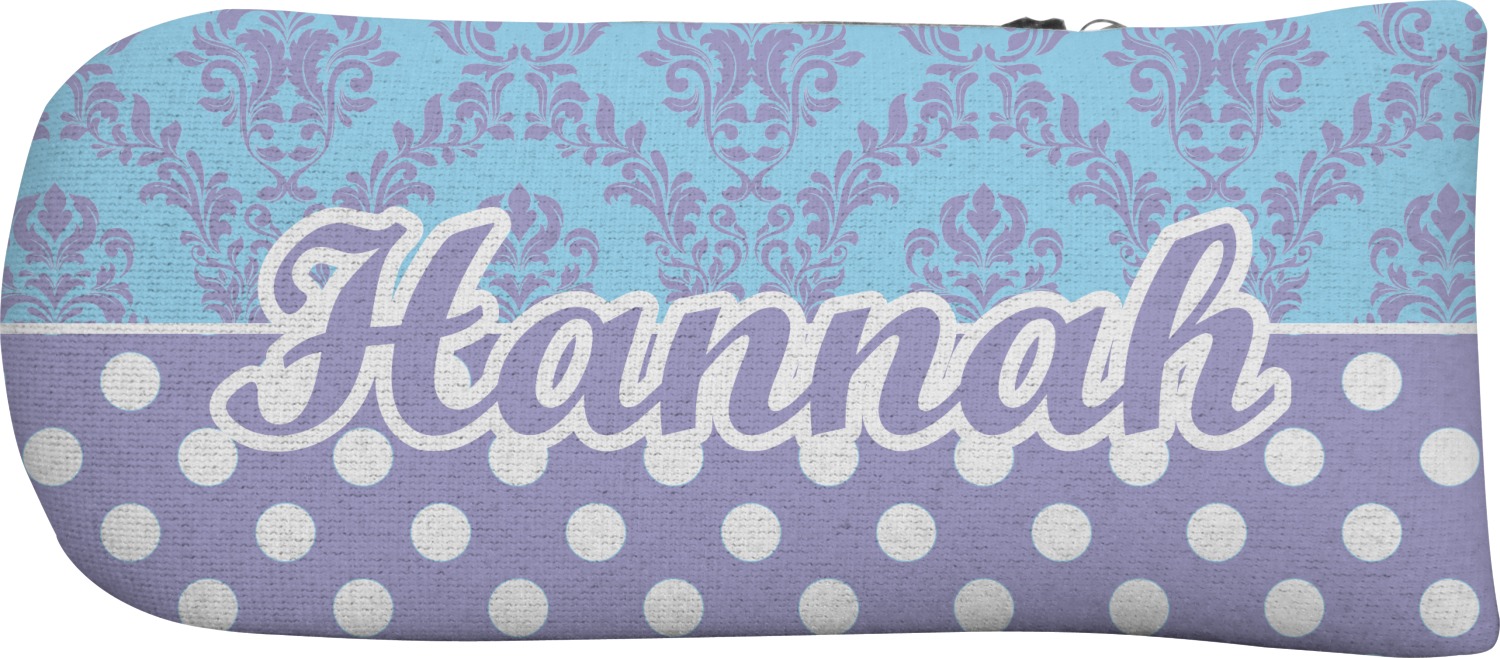 Here is a wonderful damask design with a fun, modern twist. The top of this design features a blue and purple elegant damask. The bottom features a classic design of purple with white polka dots. The two make an adorable combination. The design is completely re-color-able - so you can change any of of the colors and choose from the many many colors in our customization system.