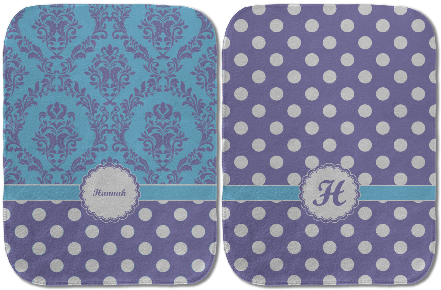 Choose your baby burp cloth from our two styles - Fleece (rectangular) or Microfiber Velour (peanut shape). The lightweight and absorbent design makes each burp cloth multipurpose; use them as a burp pad, a lap pad, a changing table, or a spare cloth to clean up any baby mess. Your customization is displayed across the front with baby-safe ink to ensure extra comfort with a white backing.