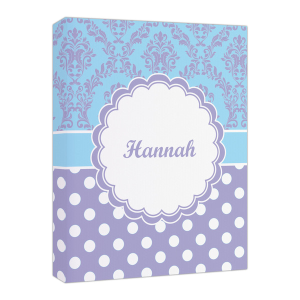 Here is a wonderful damask design with a fun, modern twist. The top of this design features a blue and purple elegant damask. The bottom features a classic design of purple with white polka dots. The two make an adorable combination. The design is completely re-color-able - so you can change any of of the colors and choose from the many many colors in our customization system.