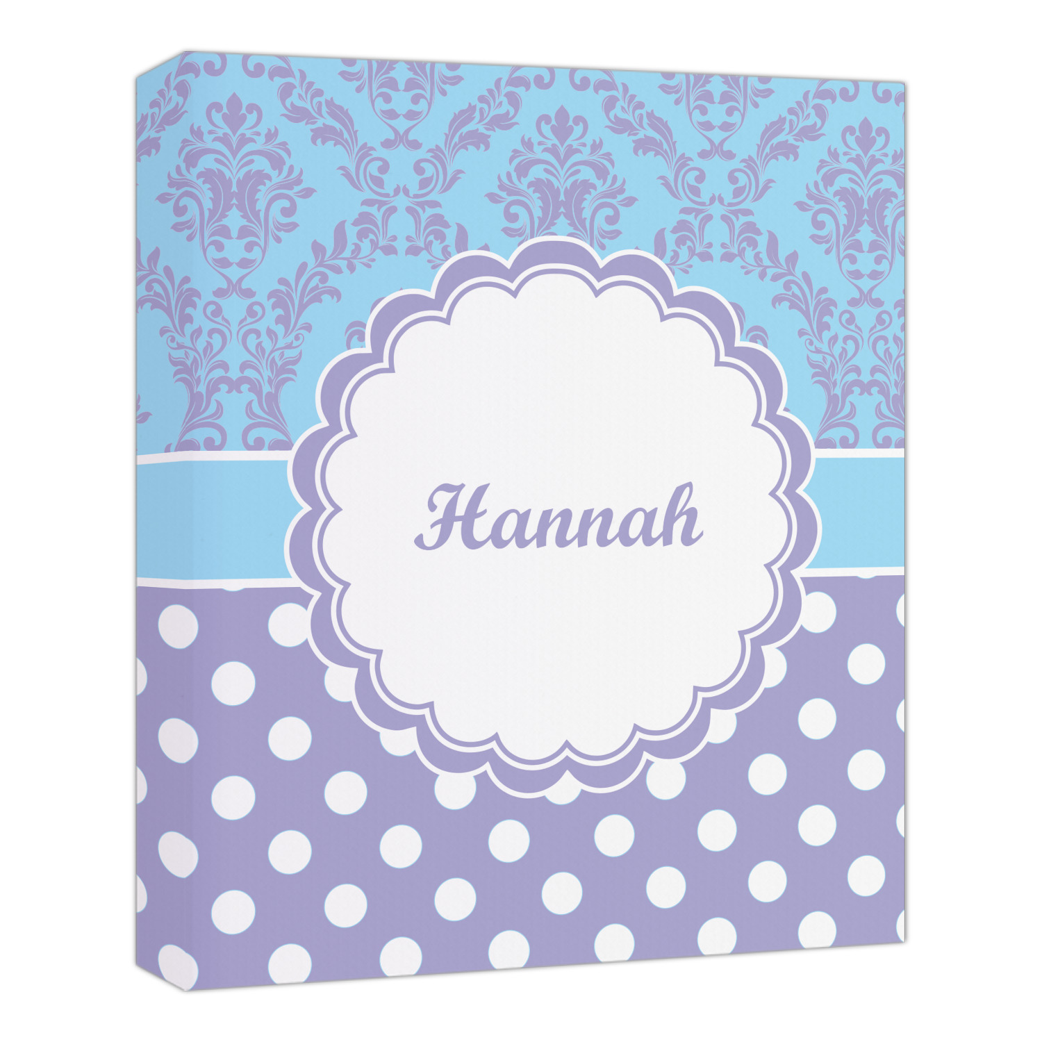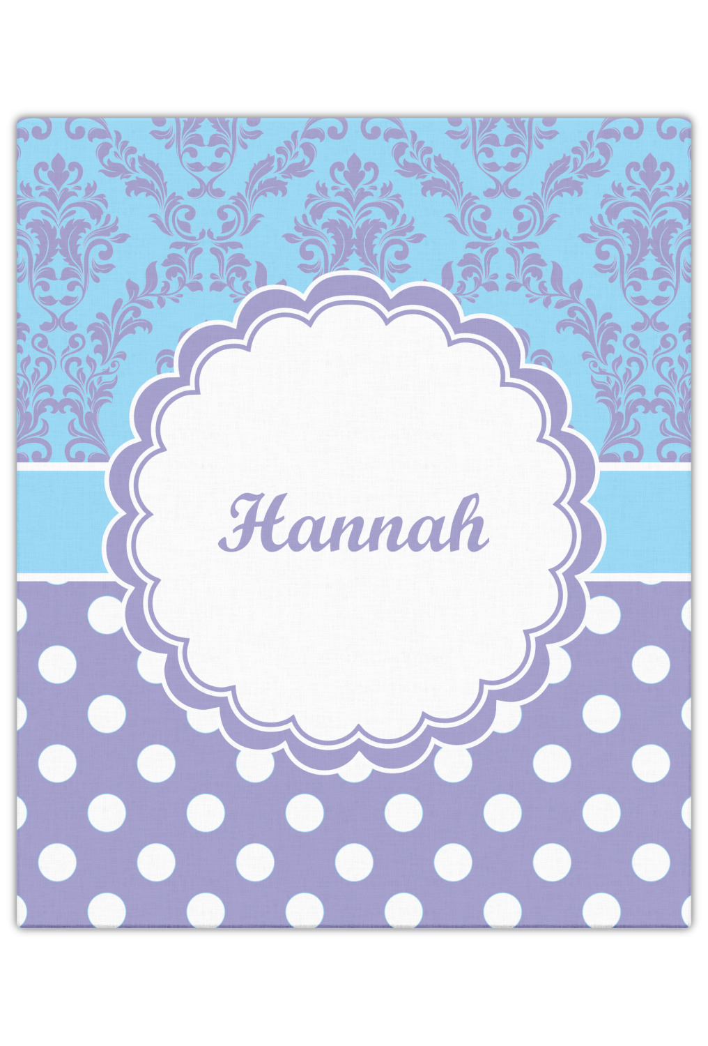 Here is a wonderful damask design with a fun, modern twist. The top of this design features a blue and purple elegant damask. The bottom features a classic design of purple with white polka dots. The two make an adorable combination. The design is completely re-color-able - so you can change any of of the colors and choose from the many many colors in our customization system.