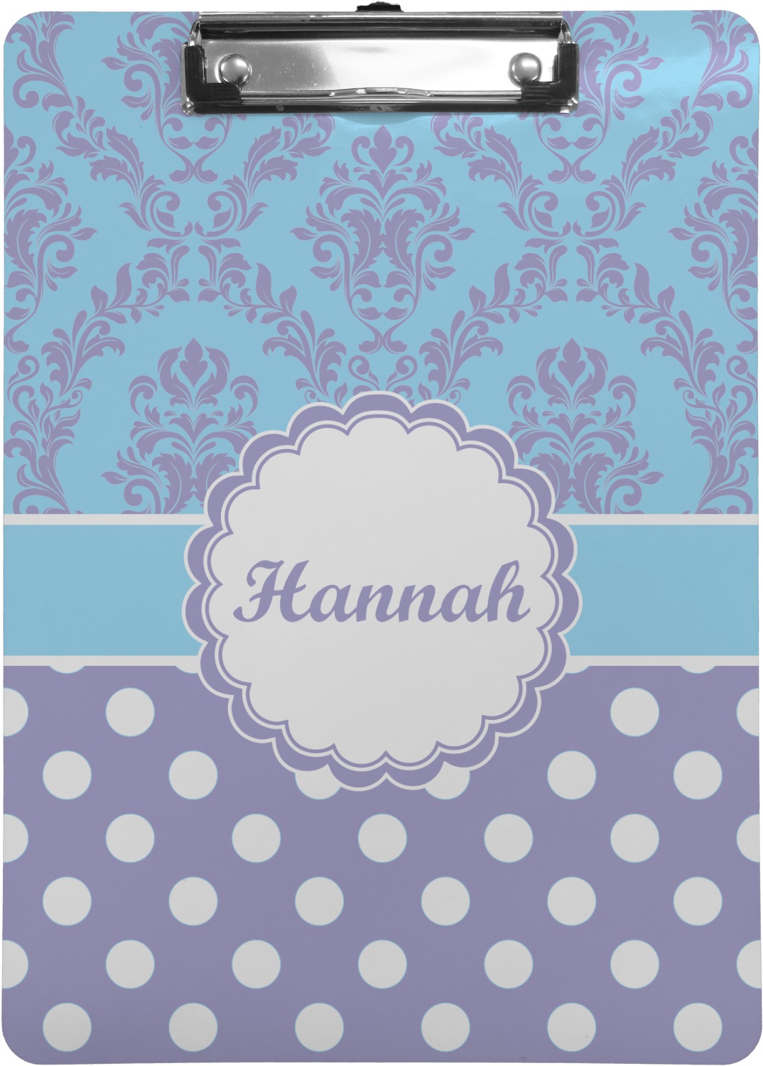 These custom clipboards are made from a strong hardboard and are coated with a glossy finish that accentuates the colors of your design. Alongside a retractable hook at its top, these decorative clipboards also feature sturdy clips to secure several sheets of paper. We sell these clipboards in two separate sizes. Our letter size measures at 12.5" L x 9" W, while our legal clipboard is approximately 15.5" L x 9" W. On both models, your personalization is printed on both sides of this clipboard and can be customized individually.