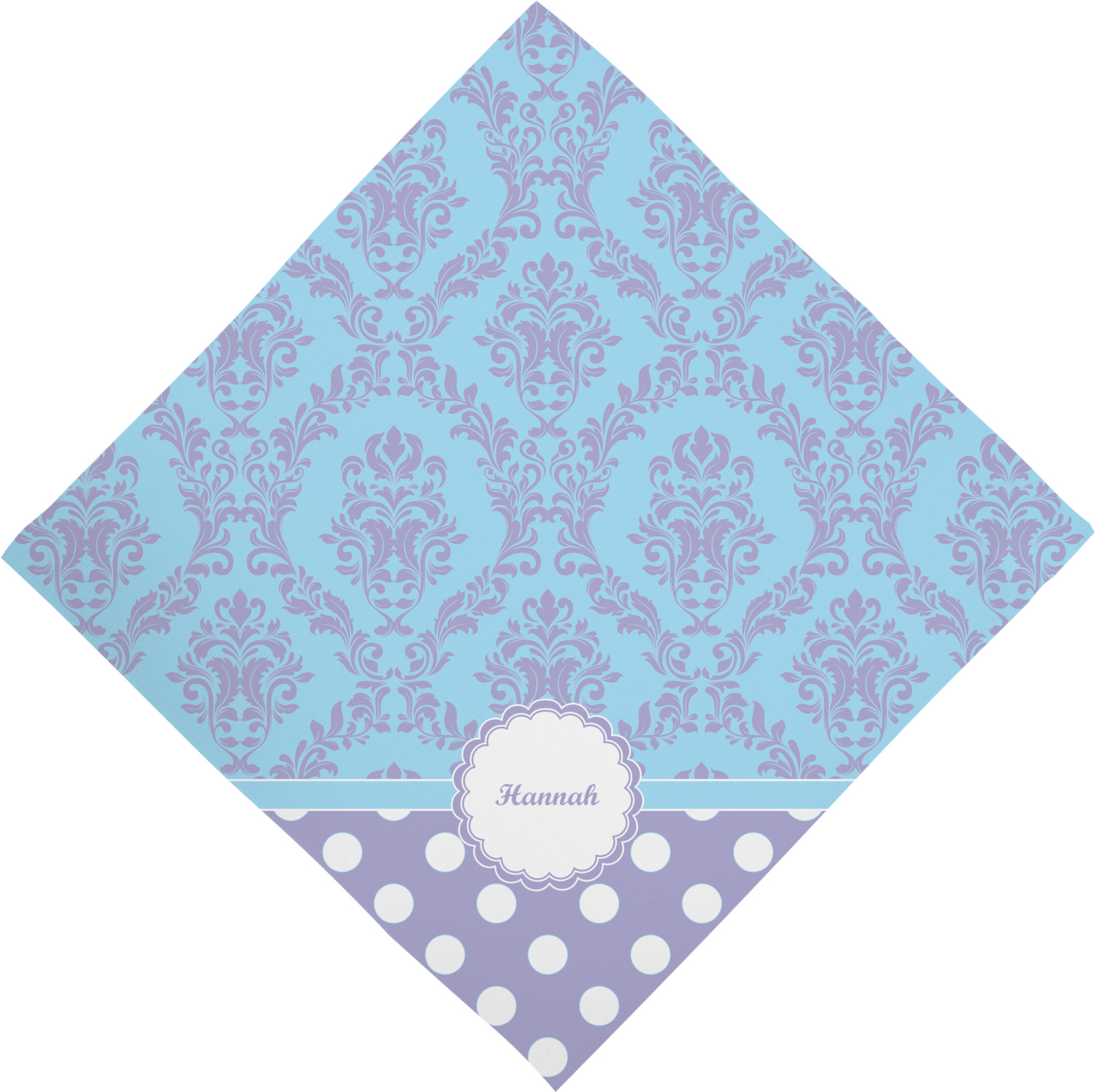 Here is a wonderful damask design with a fun, modern twist. The top of this design features a blue and purple elegant damask. The bottom features a classic design of purple with white polka dots. The two make an adorable combination. The design is completely re-color-able - so you can change any of of the colors and choose from the many many colors in our customization system.