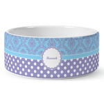 Here is a wonderful damask design with a fun, modern twist. The top of this design features a blue and purple elegant damask. The bottom features a classic design of purple with white polka dots. The two make an adorable combination. The design is completely re-color-able - so you can change any of of the colors and choose from the many many colors in our customization system.