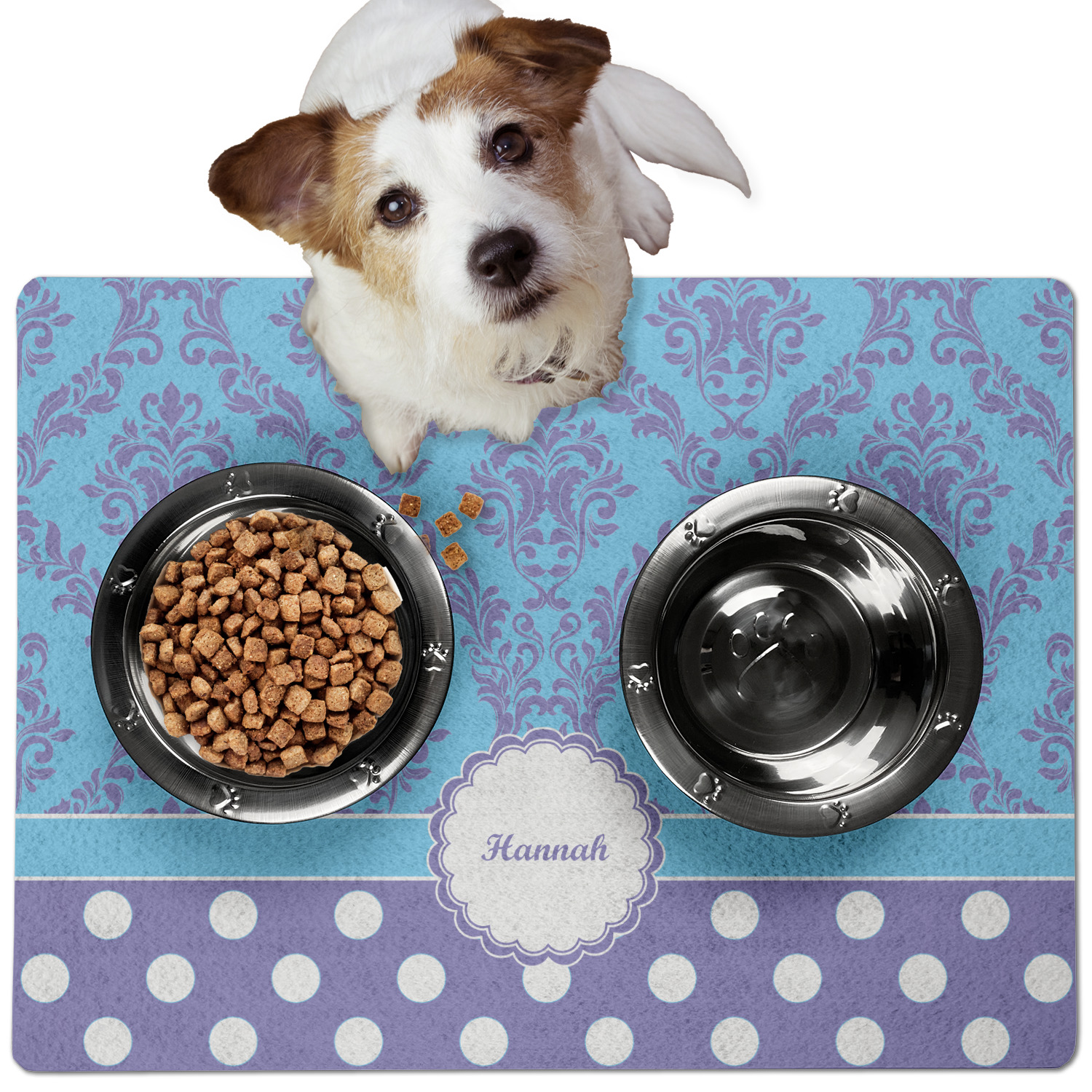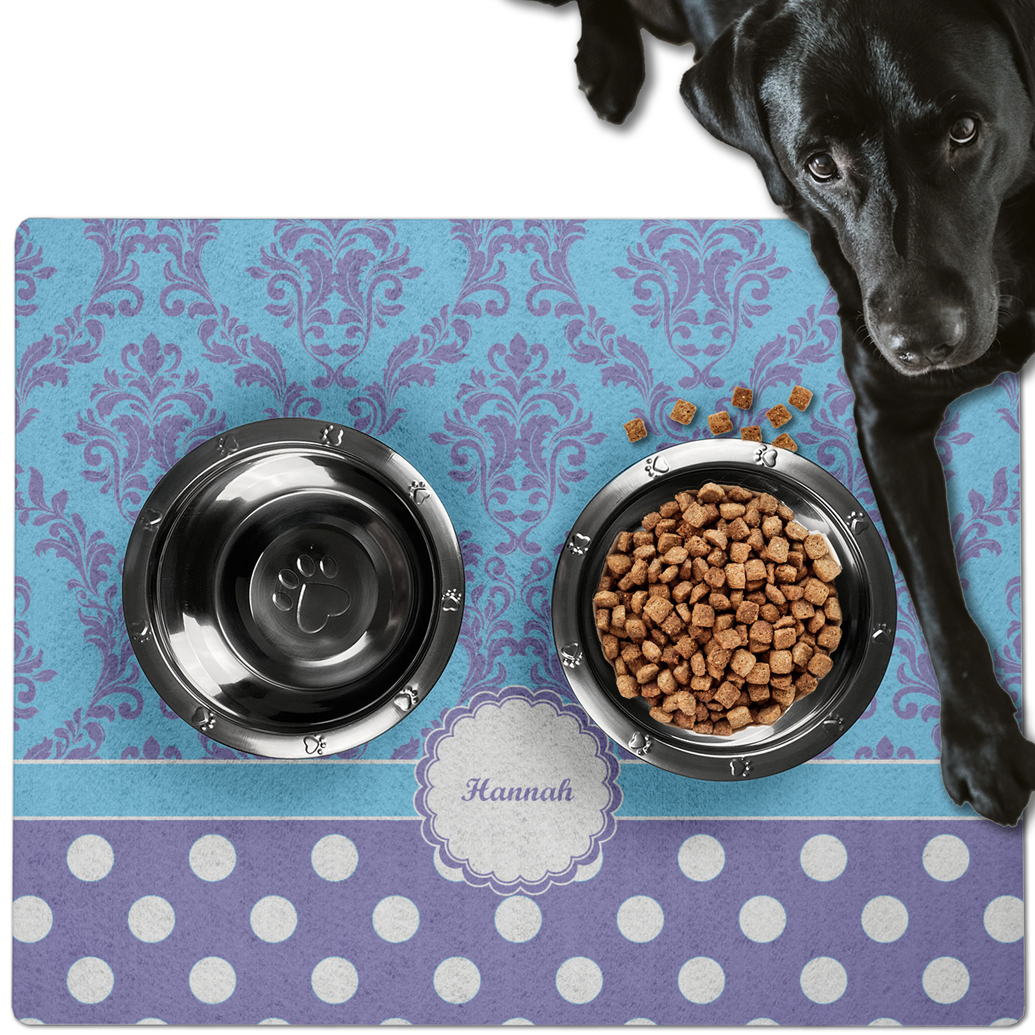 This dog bowl mat, fabricated from polyester, proudly displays your customized design on its top, while its bottom includes a non-slip rubber. This feature allows it to remain firmly in place, even when your dog spills his/her water. With 3 sizes available (18" x 12", 24" x 18", 30" x 24"), the pet food mat has ample space for both a food and water bowl for any sized dogs. Though specified for dogs' use, these mats are also a splendid option for cats.