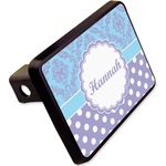 We chose a white & purple scalloped circle label on a baby blue ribbon highlights the name personalization.