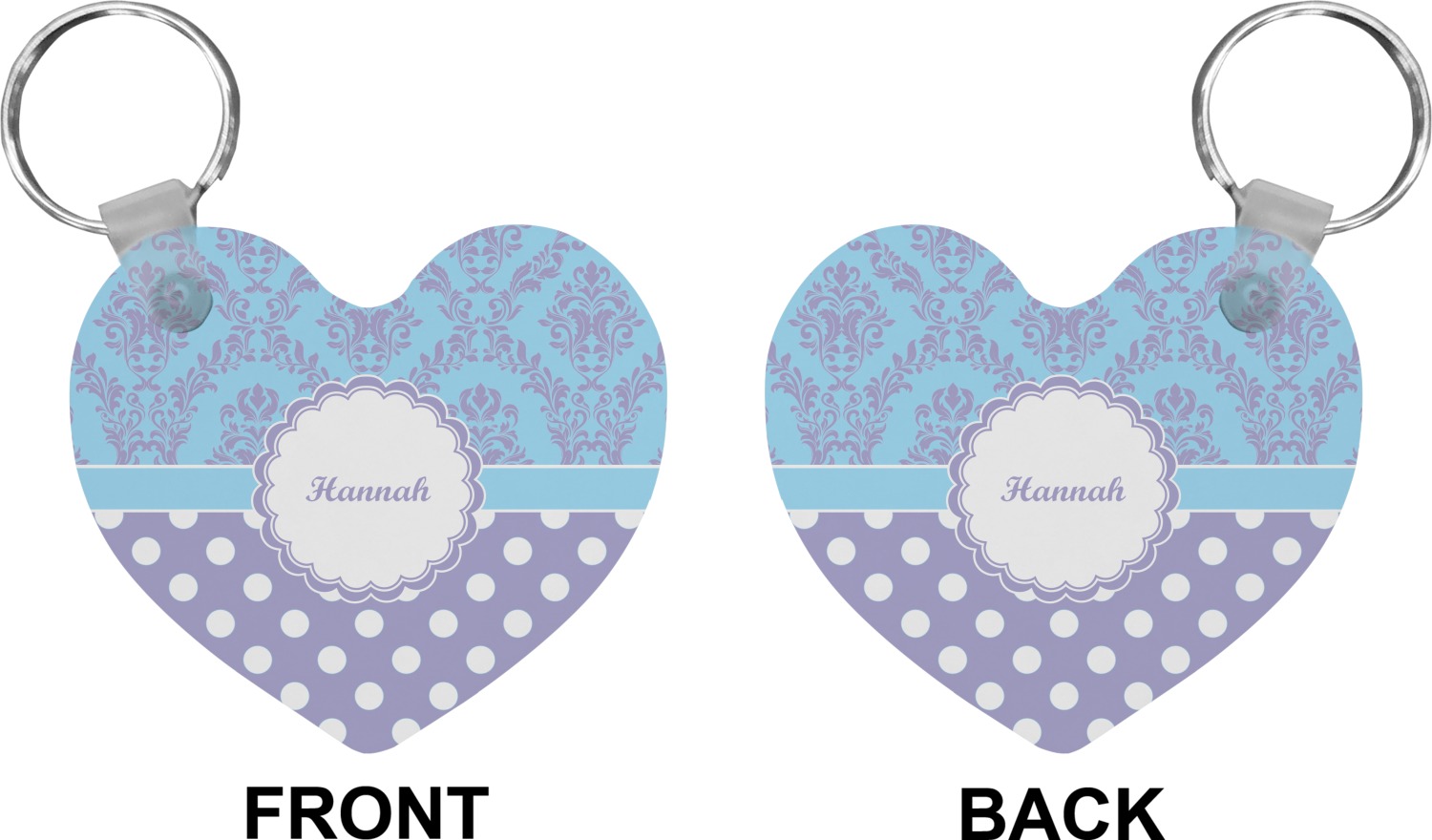 Our personalized keychains attach to the included metal, split key ring with a plastic, removable snap. Since a metal ring is included with your purchase, you have the liberty to keep your keys together on the ring, with or without your unique keychain. We offer this keychain in three different shapes: circle, heart, or diamond. We print your personalized design(s) on both sides of the key chain, and the surface has a glossy, reflective finish that only emphasizes your design. Each keychain is approximately 2.25 by 2.25 inches.