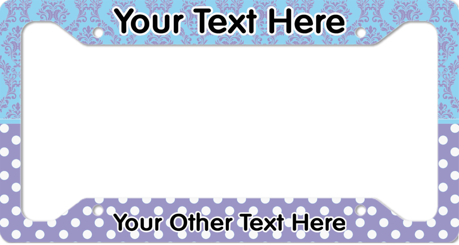 Each customizable license plate frame is made from a fine, yet sturdy aluminum material that measures approximately 6.5 x 12.15 inches, accommodating most standard license plates. The thickness allows the license plate frame to adhere completely to your license plate for a seamless look. We carry 3 styles of license plate frames to customize - Style A has texts on top and bottom, Style B offers texts on top and bottom as well as a full fill bottom border, and Style C offers text at the bottom only. The personalized license plate frame comes with four mounting holes for easy installation! We print each custom design across the frame with a glossy finish.