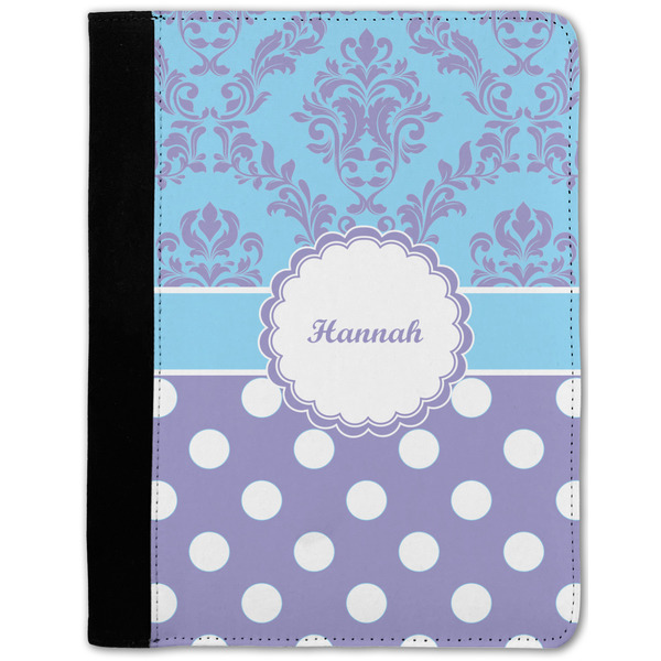 These personalized padfolios are made from a black, polyester microfiber and features a standard, 50-page notepad. However, these black padfolios can accommodate a pad with up to 100 pages. This model also features a slot pocket for any loose sheets of paper, small pockets for business cards, and an elastic band to secure a pen. We print your personalization across the front of this notepad portfolio in bright, vibrant color. These padfolios come in 2 sizes, Medium - approximately 10.25" x 8" for 5" x 8" paper and Large - approximately 12.5" x 8.5" for 8.5" x 11" paper.