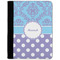 Here is a wonderful damask design with a fun, modern twist. The top of this design features a blue and purple elegant damask. The bottom features a classic design of purple with white polka dots. The two make an adorable combination. The design is completely re-color-able - so you can change any of of the colors and choose from the many many colors in our customization system.