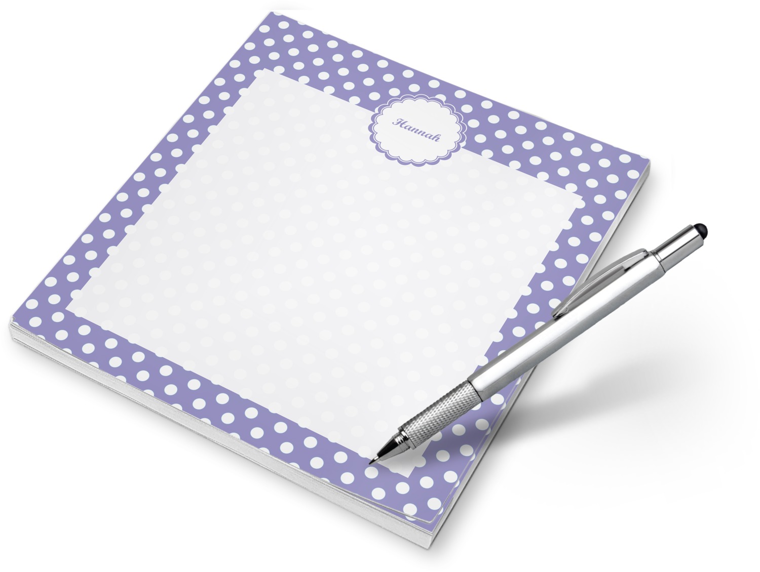 Your custom notepad features 50 sheets of thick, white paper, with your customization in the background and the edges. At approximately 6" x 5.5", these personalized memo pads are slightly larger than your average notepad. The individual notes tear easily from binding, which allows for quick, convenient, note-taking.