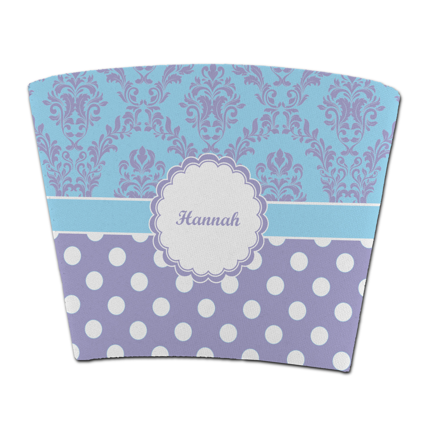 Here is a wonderful damask design with a fun, modern twist. The top of this design features a blue and purple elegant damask. The bottom features a classic design of purple with white polka dots. The two make an adorable combination. The design is completely re-color-able - so you can change any of of the colors and choose from the many many colors in our customization system.