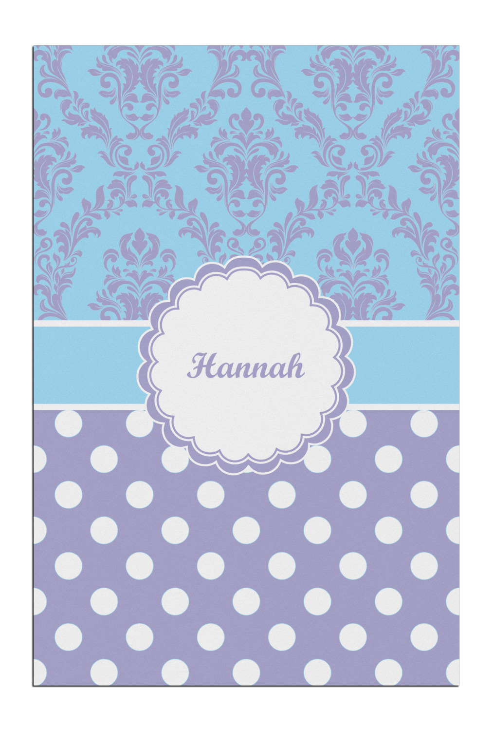 Here is a wonderful damask design with a fun, modern twist. The top of this design features a blue and purple elegant damask. The bottom features a classic design of purple with white polka dots. The two make an adorable combination. The design is completely re-color-able - so you can change any of of the colors and choose from the many many colors in our customization system.