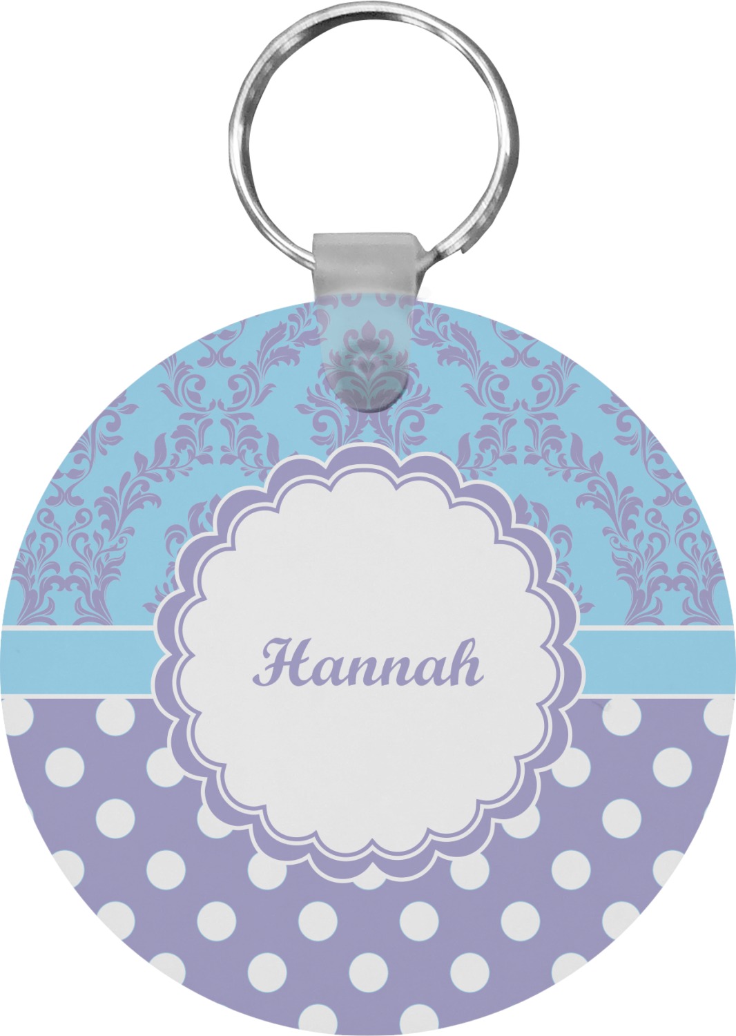 Our personalized keychains attach to the included metal, split key ring with a plastic, removable snap. Since a metal ring is included with your purchase, you have the liberty to keep your keys together on the ring, with or without your unique keychain. We offer this keychain in three different shapes: circle, heart, or diamond. We print your personalized design(s) on both sides of the key chain, and the surface has a glossy, reflective finish that only emphasizes your design. Each keychain is approximately 2.25 by 2.25 inches.